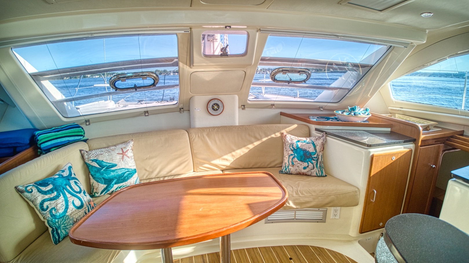 The Leopard 40 was Cruising World’s Boat of the Year. CW Judges stated they found the best blend of purpose, quality and character,”The Leopard 40 is bigger and sails better than her predecessor, lighter by 4,000 pounds and saildrives keep the boat quiet.” They saw one of this model’s most remarkable feature as, "The Sail Handling Center by the helm, should become an industry standard. By bringing the sail controls all to one spot, you optimize handling the boat in rough conditions or when sailing shorthanded." Ergonomics, engine access, placement of hand-holds, interior layout all contributed to winning the award.
