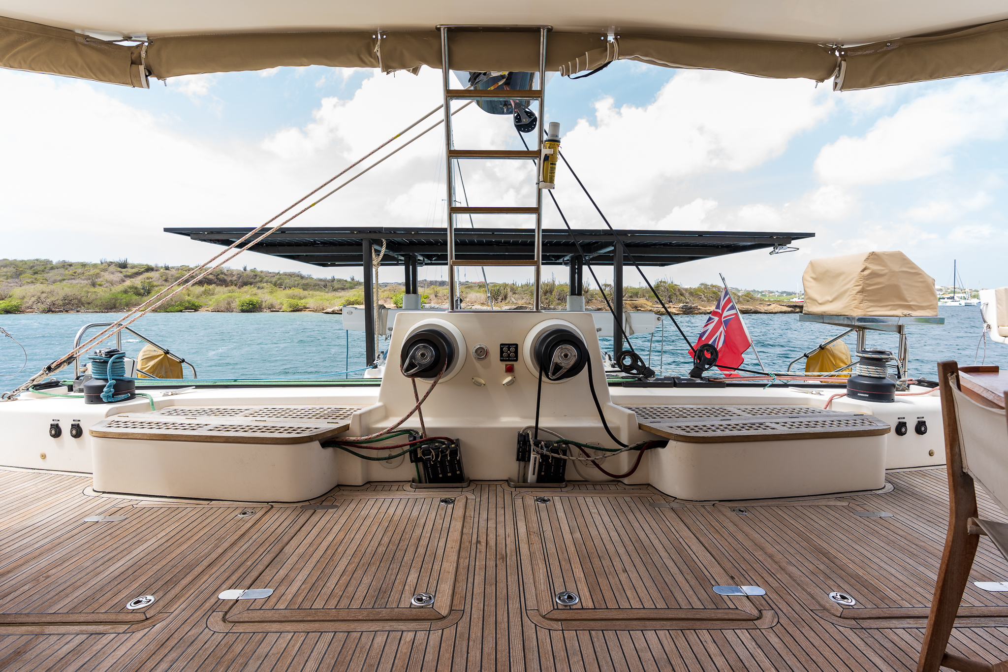 Hydraulic winches for effortless sail handling – Primary, halyard, mainsheet, and daggerboard winches (Harken hydraulic systems) let you trim sails and adjust lines with ease from both helm stations. Full system revisions and upgrades in 2023 ensure smooth operation and reliability.