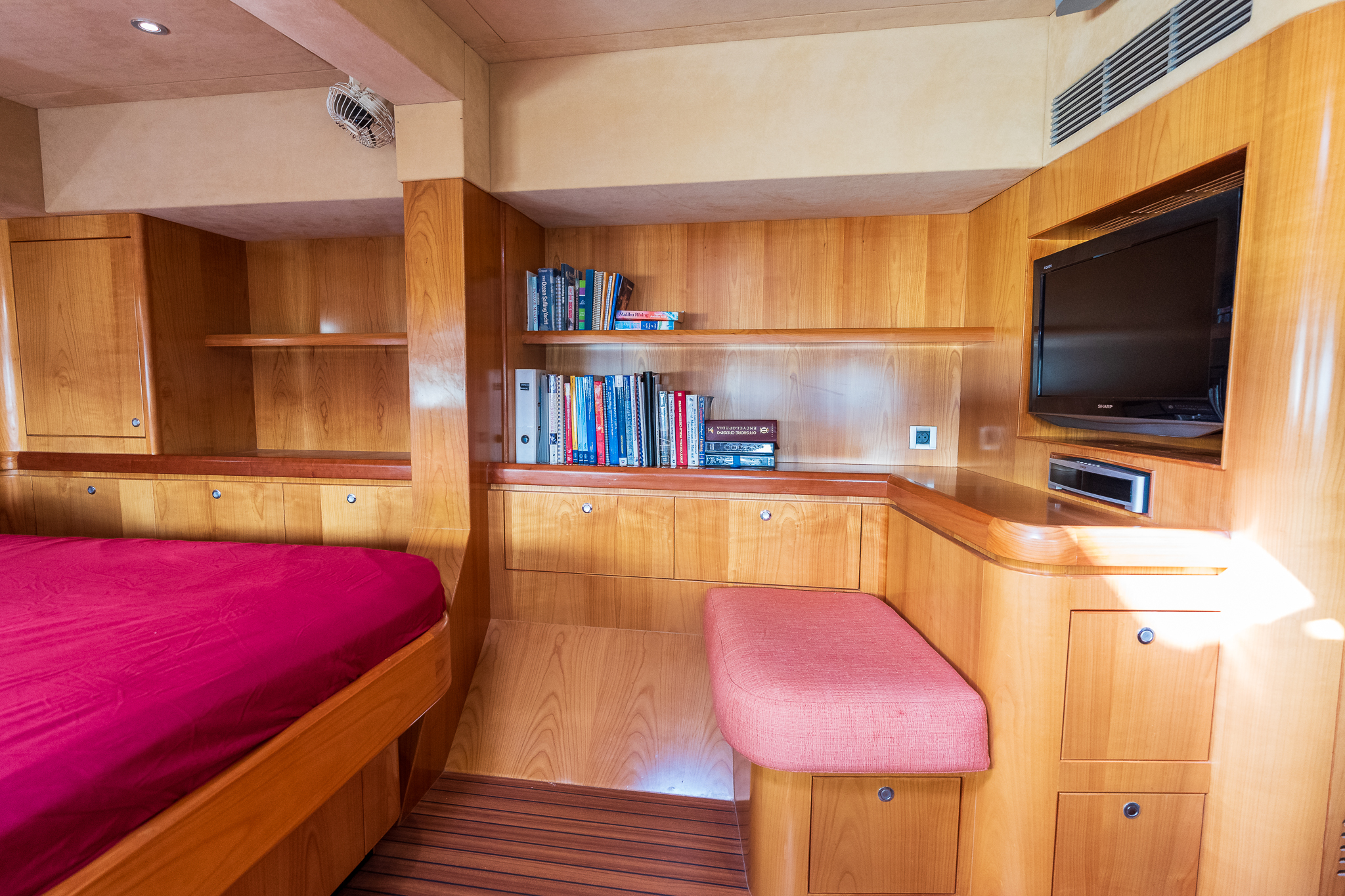 Ample closets, drawers, and a discreet safe provide plenty of storage, while under-bed compartments finished to the same standard as the rest of the cabin hold an additional 33 sq/ft of space.