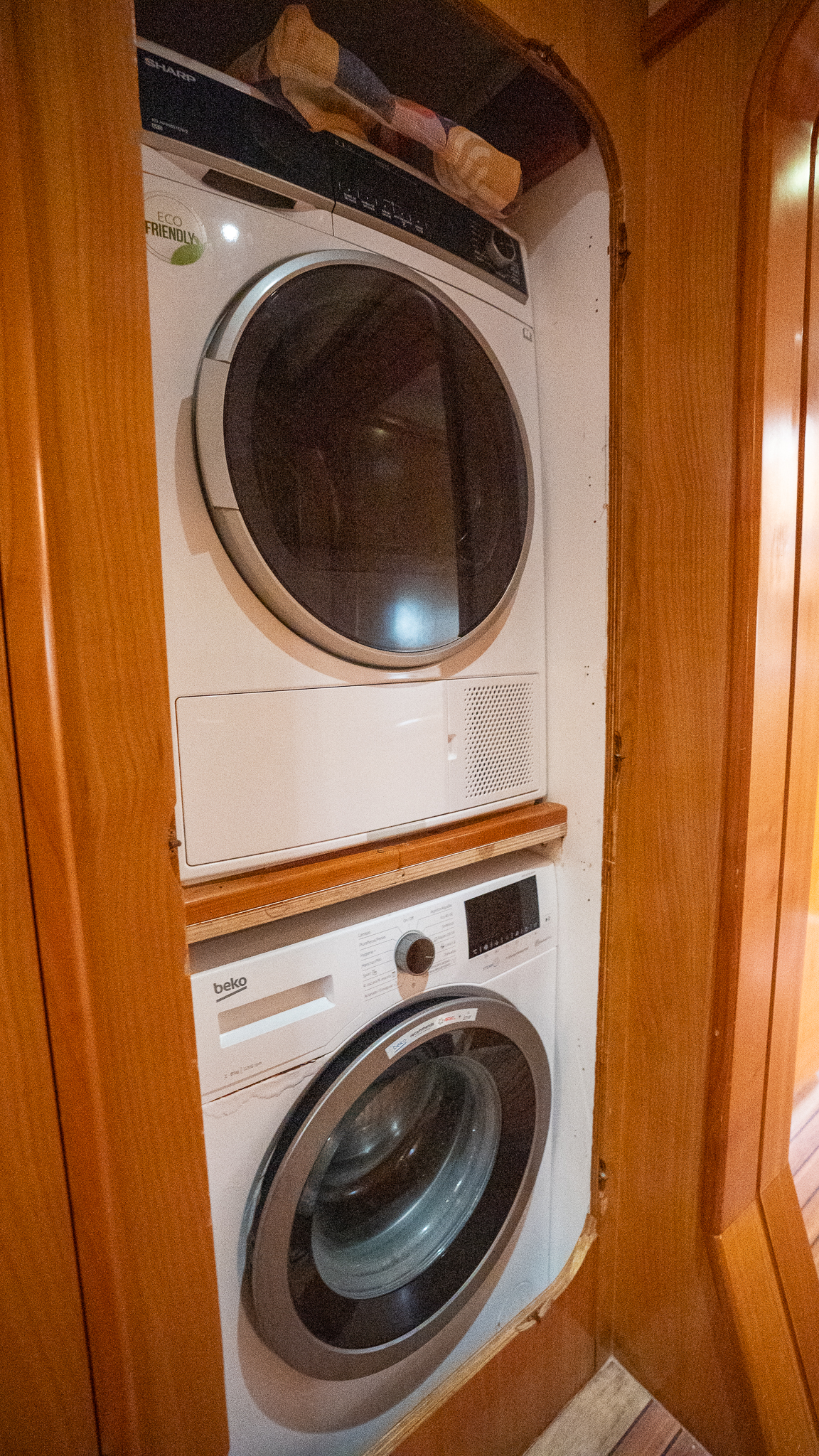 Convenient laundry – Beko 8kg washing machine and Sharp 8kg condensing dryer (2022) let you handle laundry effortlessly while at sea.