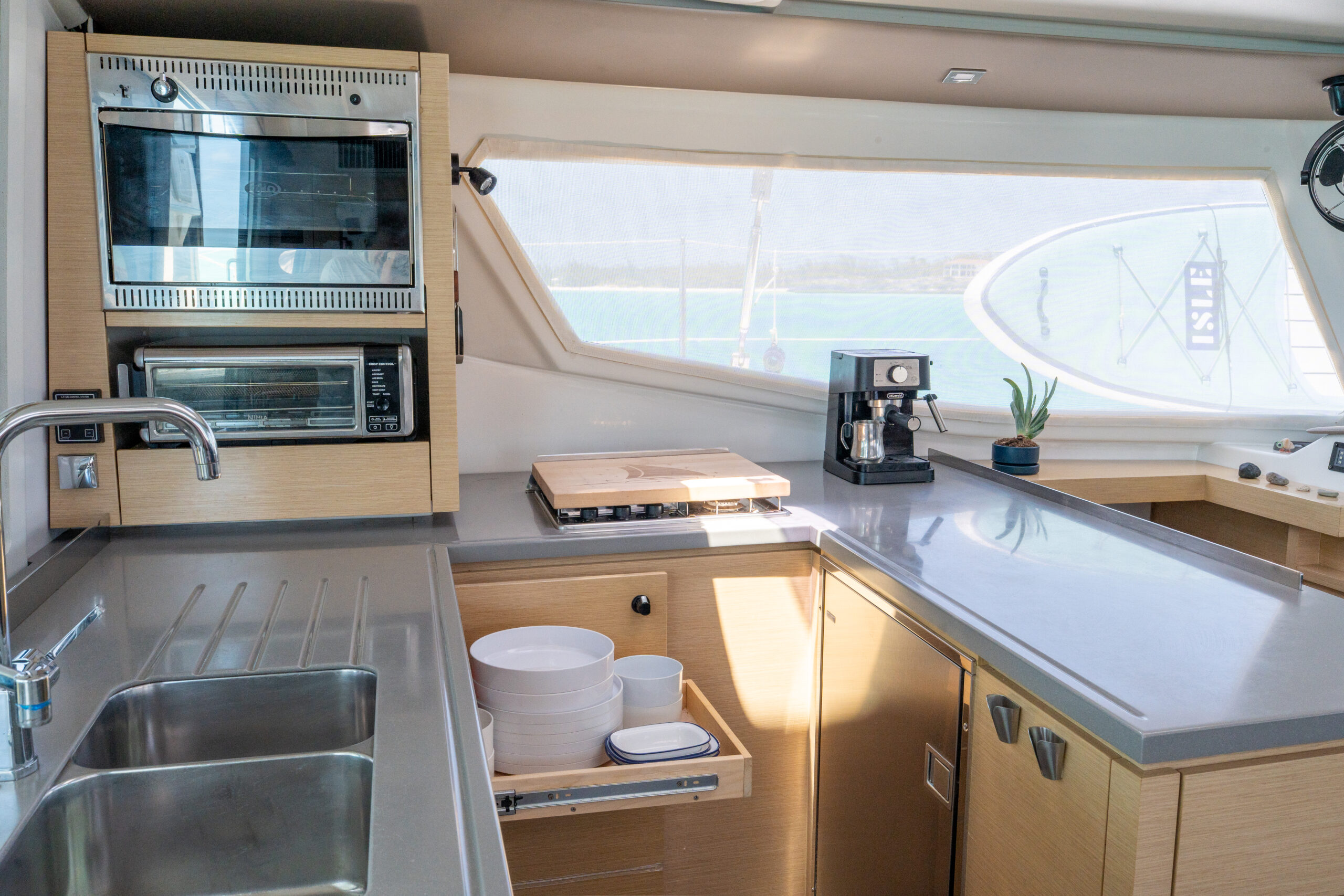 The amount of equipment and inventory that comes with Haven is astounding. Everything from a medical kit, ditch bag, a well equipped galley, to spare parts and tools are included. It is exactly what you want in a modern cruising catamaran. A few of Haven's most notable features: