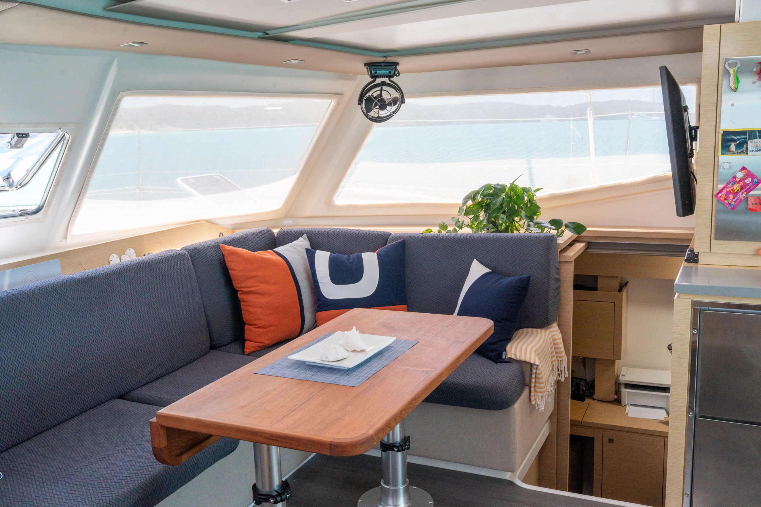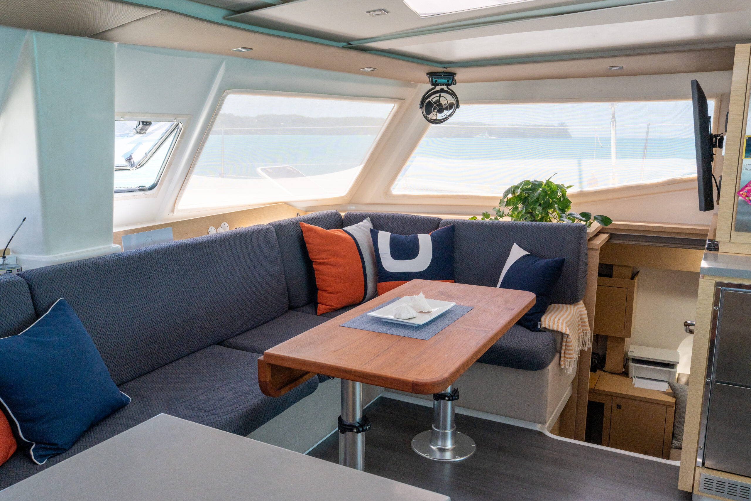 Interior blackout curtains in main salon and main cabin