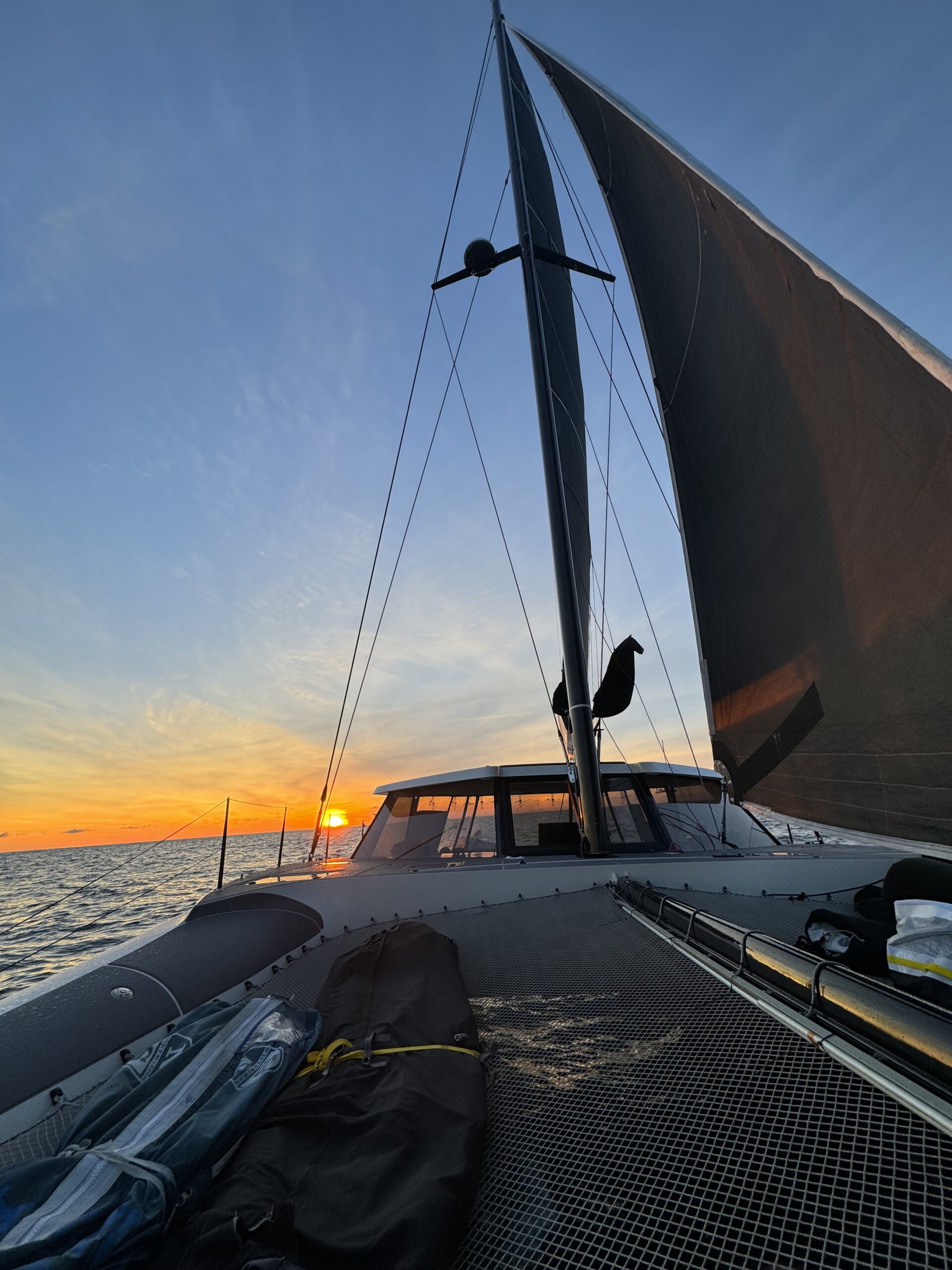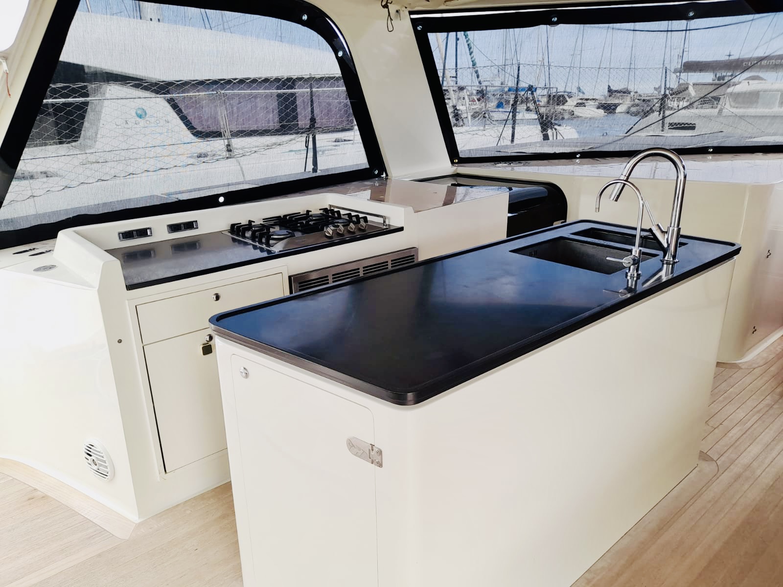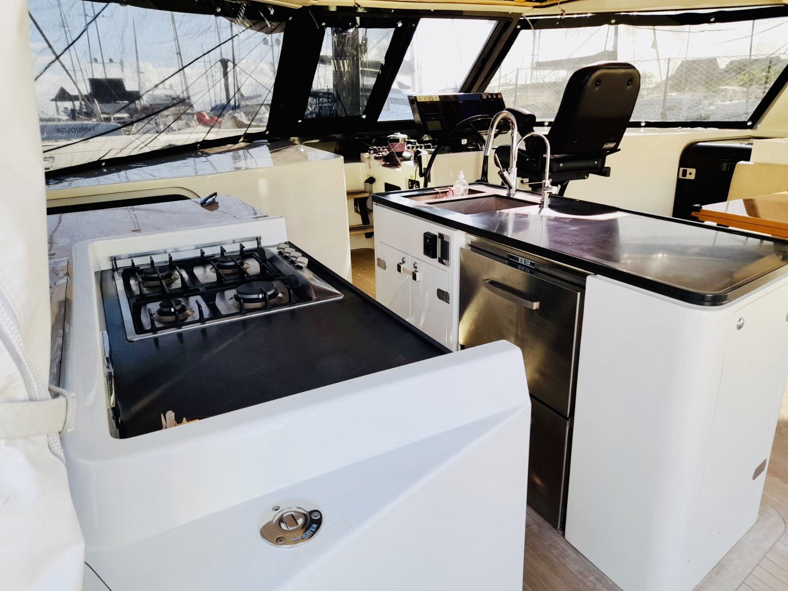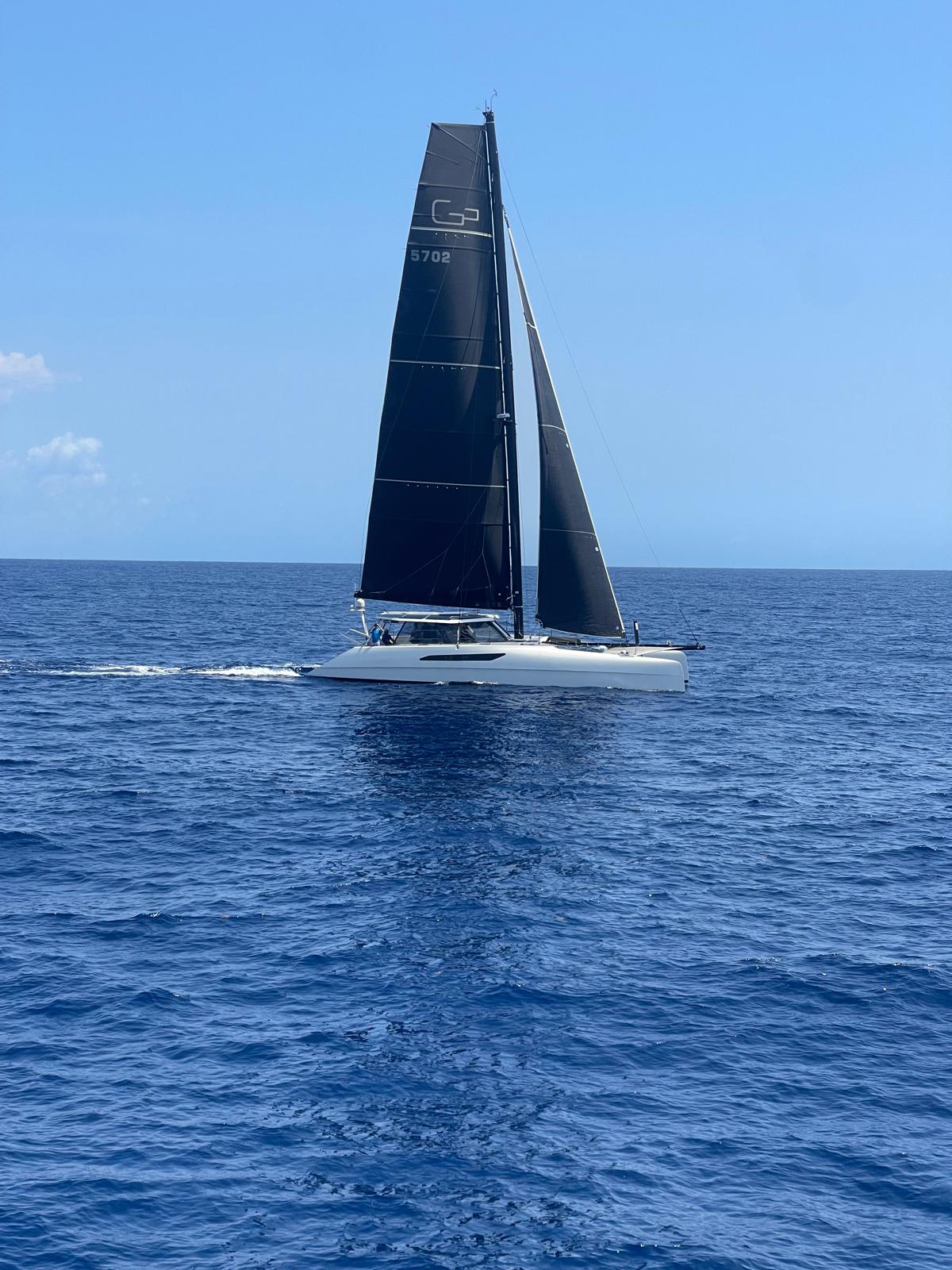 A proven performer designed for fast family cruising; VANDAL offers her next owner the best owner-operator performance cruising platform ever built. VANDAL features an unmatched combination of easy single-handed sailing, true Gunboat high-performance speed and agility, and the latest in elegant luxury and bold style. Whether tearing down the bay with family and friends or settling in for a 250+ mile/day Pacific crossing, VANDAL is the fun and confidence-inspiring adventure platform you have been searching for. Built in the USA, VANDAL was born to sail long distances quickly and safely and to be the ultimate entertainment and adventure platform upon arrival. Her revolutionary cockpit - galley - salon area seamlessly integrates sailing and living into one large, protected, light-filled experience, where one can trim and douse sails in weather. Her airy, social, galley-up design makes serving pina coladas, hanging with friends and loved ones, and meal prep a pleasure, ensuring she is the life of the party in every beautiful anchorage she finds. In the port aft hull there is her extensive pantry storage and additional full-height fridge and freezer to keep the crew well-nourished before retiring to the three generous and boldly-styled queen+ staterooms to rest up for the next day’s adventures.In addition to her Gunboat pedigree, VANDAL sports significant post-construction upgrades to her reinforced rig improved bearing and tie bar steering, and solar power array. These substantial improvements, undertaken with Gunboat at Newport Shipyard, incorporated the best practices and hard-won knowledge of 20 years of Gunboat owners and crew to create an intelligent, bullet-proof, blue water performance cruiser unlike anything on the market.VANDAL is ready for her next adventure! A simple, lightweight, high-tech 57ft performance cruising catamaran designed to be simple with minimal maintenance and easy for an owner-operator. Ideally suited for World cruising by a couple with occasional guests, Day sailing, picnicking & entertaining. Sabbatical Cruising. The main living space has a maximum area with no bulkheads dividing the salon, galley, and living area .This Gunboat has performance keels for safe fast cruising without the risk damaging centerboards while providing nearly same upwind performance with similar surface area as center boards. Build in 100% carbon fiber it is super strong and light. The Gunboat 55 model is 57ft LOA. Easy to sail self-tacking jib.3 cabins, 2 head layout, with desirable galley-up in main salon area. Easily sail at 14 kts to 21kts reaching. Sail 250 miles per day for fast short-handed cruising.Loaded with all typical cruising amenities, lithium batteries, solar, A/C, generator, water-maker, electric winches, loads of cool storage, electric winches, large inventory of spares, AIS, Radar, B&G electronics.New bottom paint Feb 2023. Out-of-water bottom survey completed Feb 2023 with thermography imaging in report with no issues. Out-of-water bottom survey completed Feb.2023 Infrared thermography imaging in report, all in good condition.