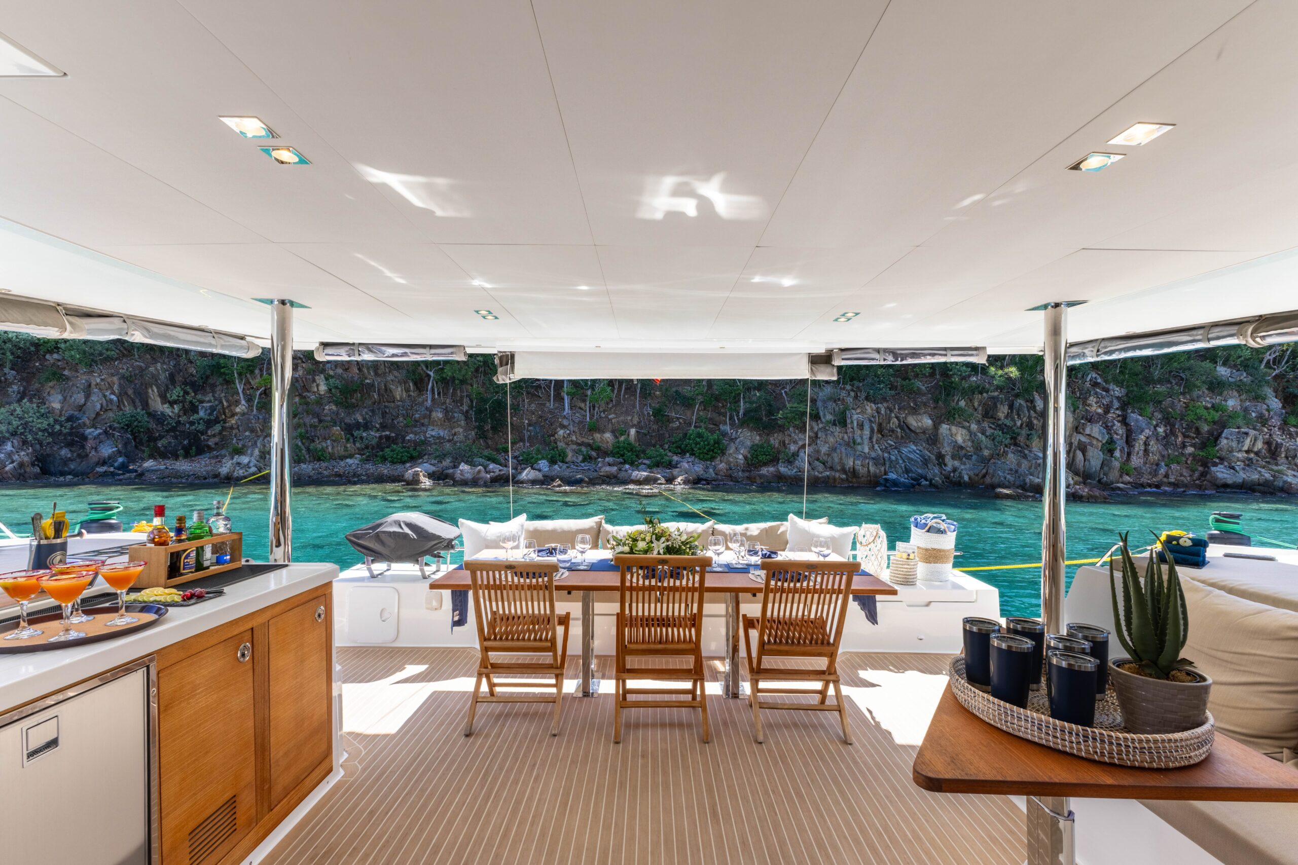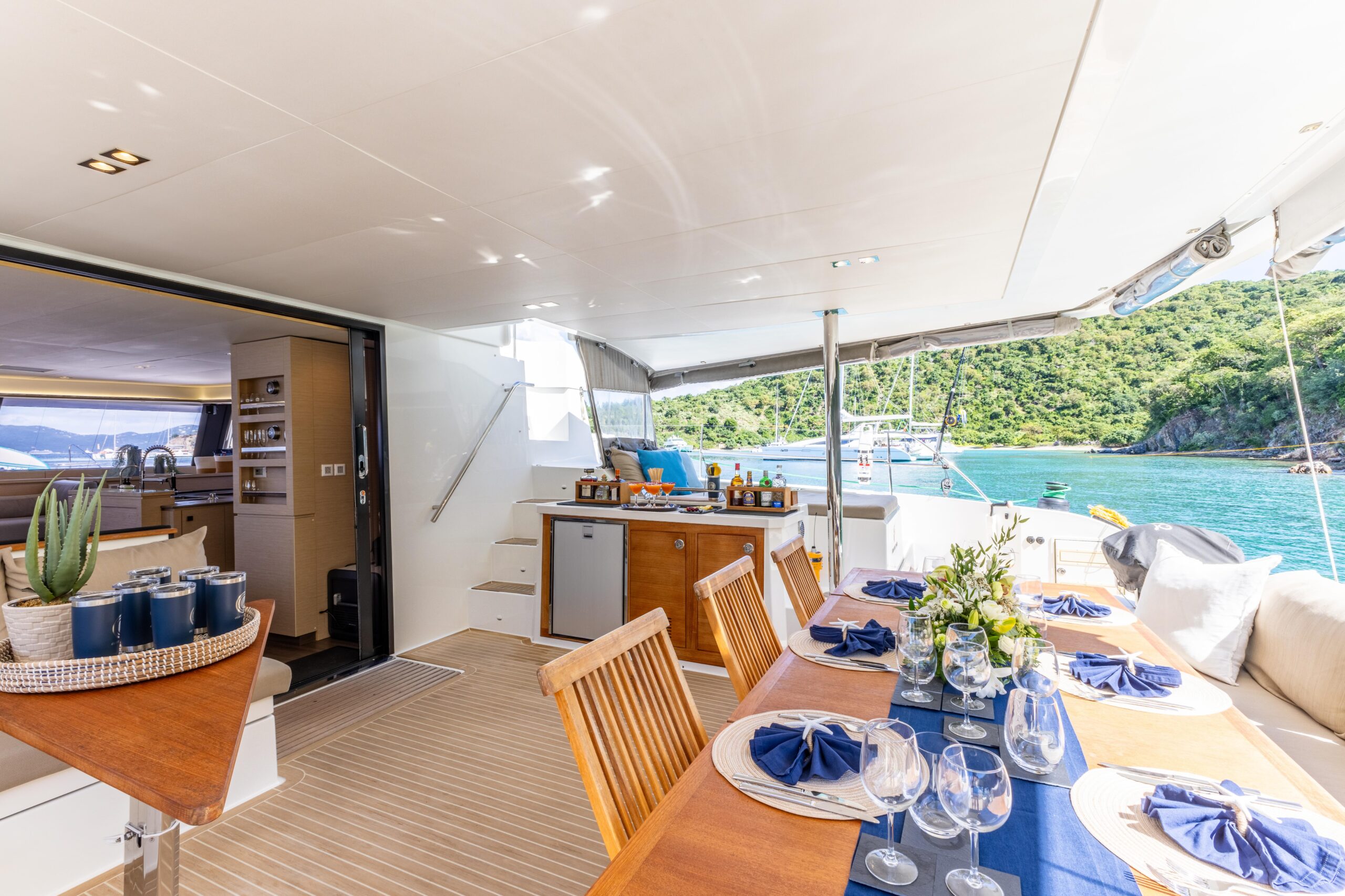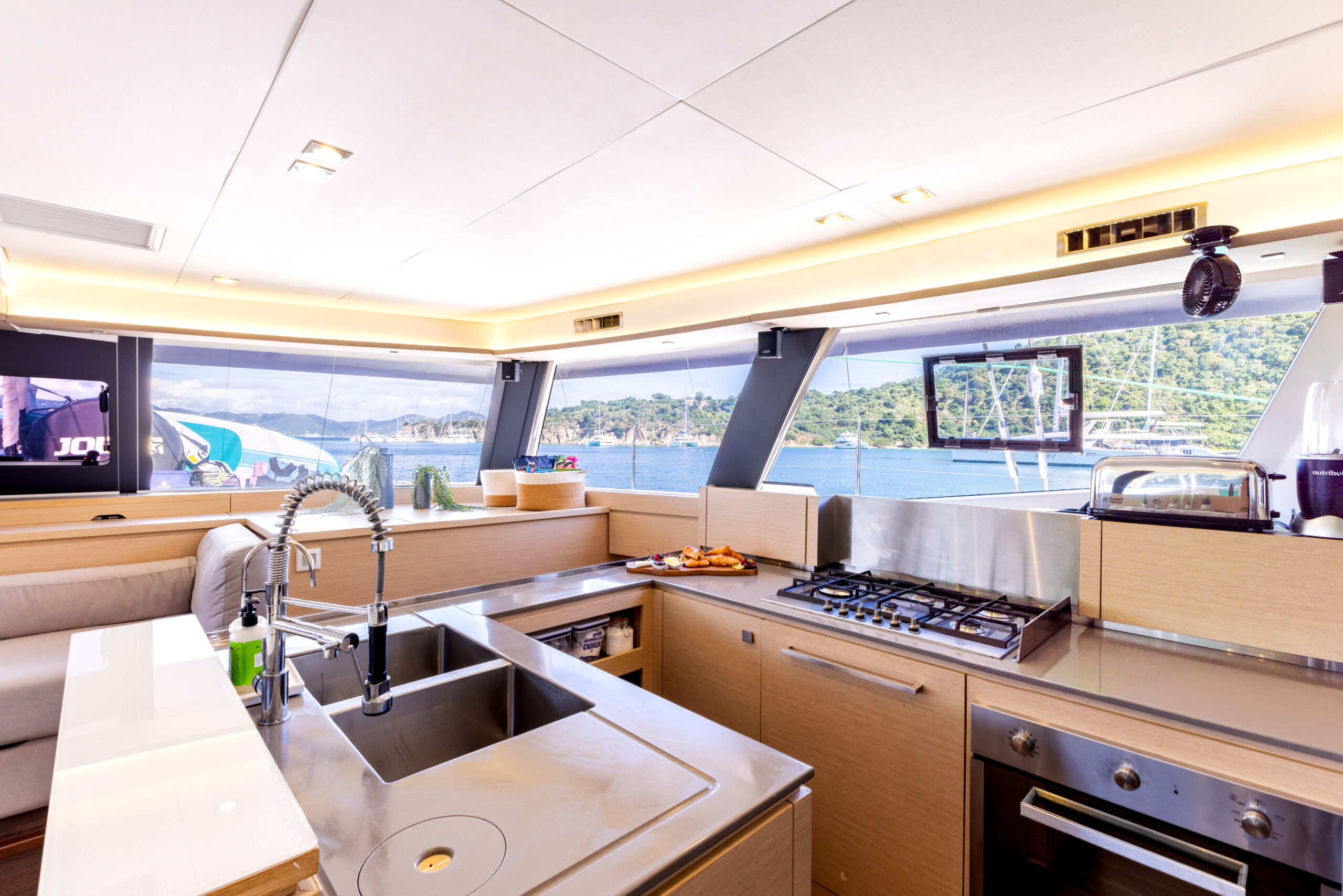Host long lazy lunches in the stunning 25m2 cockpit that comfortably accommodates the largest group of guests, and then unwind on the inspired modular sunbathing deck on the catamaran’s expansive foredeck. This cruising catamaran includes the largest flybridge on the market with dual access points to deliver safe and convenient movement onboard.