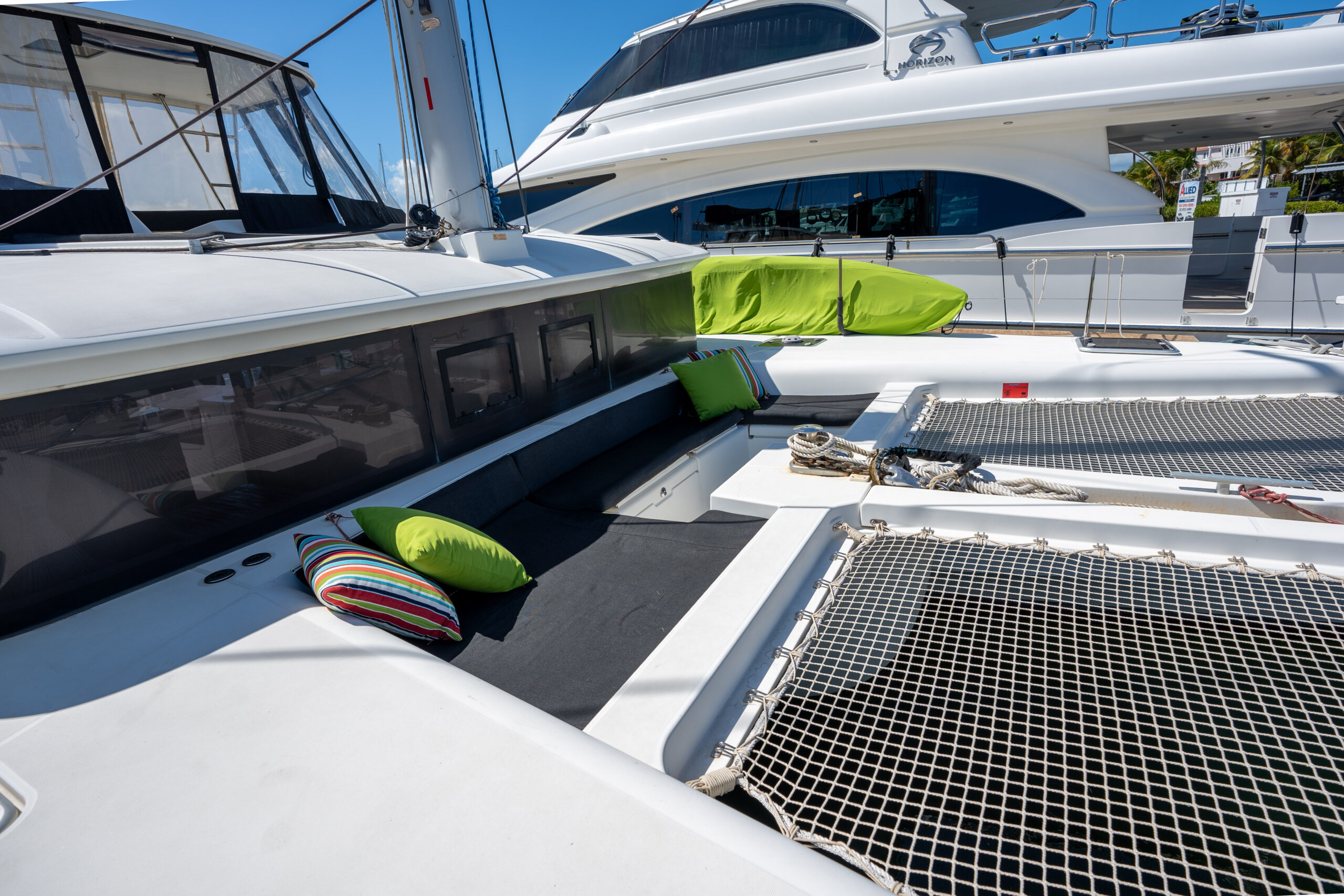 Beautifully maintained Lagoon 450F is located in Puerto Rico. This yacht features a bright and airy salon with panoramic windows that provide 360-degree views and ample natural light. The open-plan layout seamlessly connects the interior and exterior spaces, making the Lagoon 450F perfect for entertaining and relaxing. The modern, well-equipped galley, situated in the salon, offers plenty of storage and a convenient layout, allowing the chef to prepare meals while entertaining family and friends. The yacht comfortably accommodates up to six guests in well-appointed cabins, each with an en-suite bathroom, generously sized berths, self-contained air conditioning, and sufficient storage. Expansive deck spaces feature multiple lounging areas, a large cockpit with comfortable seating, and a sunbathing area on the flybridge. The helm station is ergonomically designed, with all lines leading to it and four strategically placed winches for easy handling of the vessel. This yacht comes equipped with many extras, as detailed below. Don’t miss the opportunity to own this incredible catamaran—contact us today to arrange a viewing!