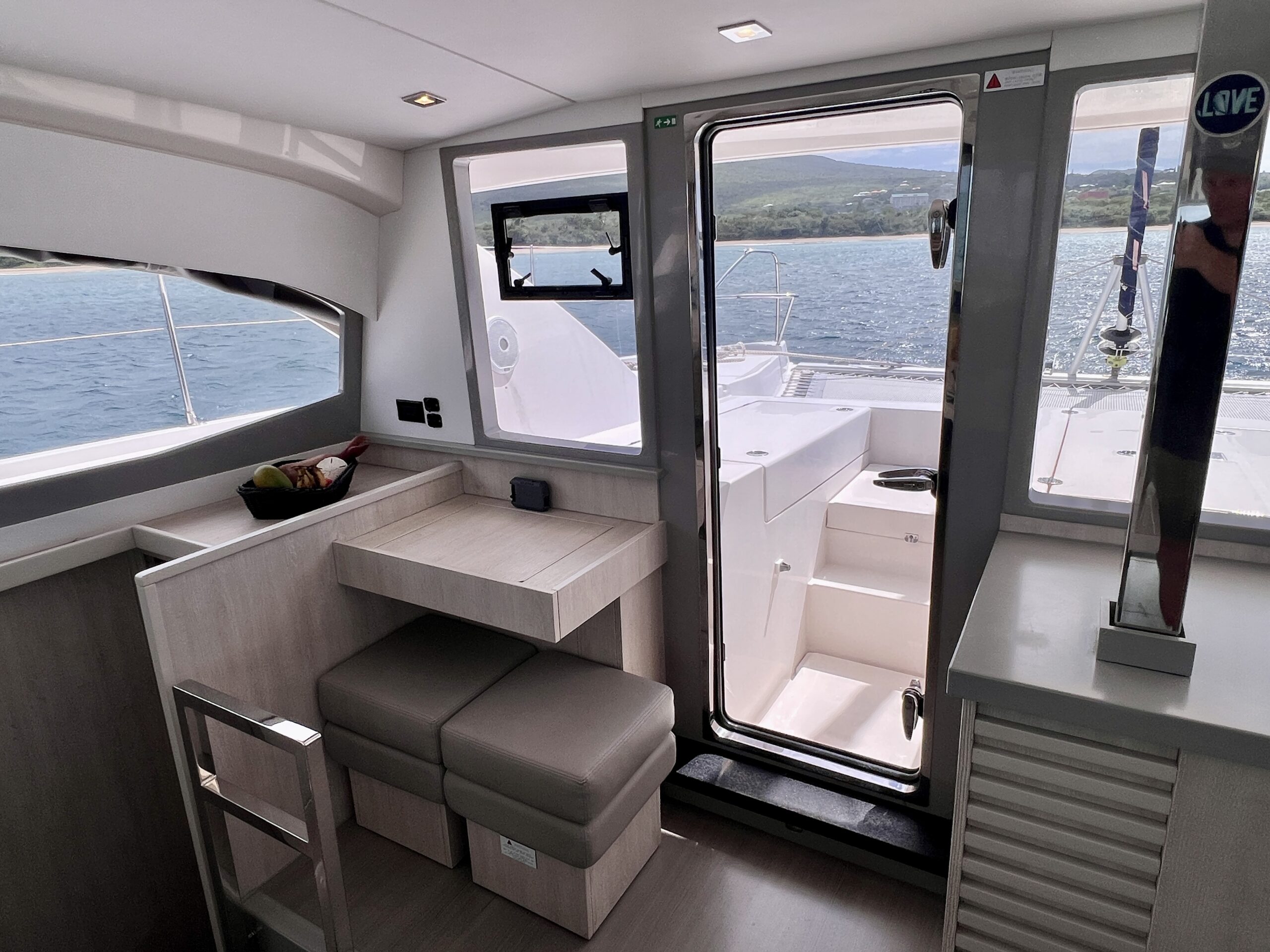 The hallmarks that have made Leopard one of the top catamaran brands are all on display here from the forward door, light and breezy interior color scheme, convivial dining and social spaces, and an excellent helm design that makes this boat not only easy to sail, but does not remove you from the rest of crew when at the helm.