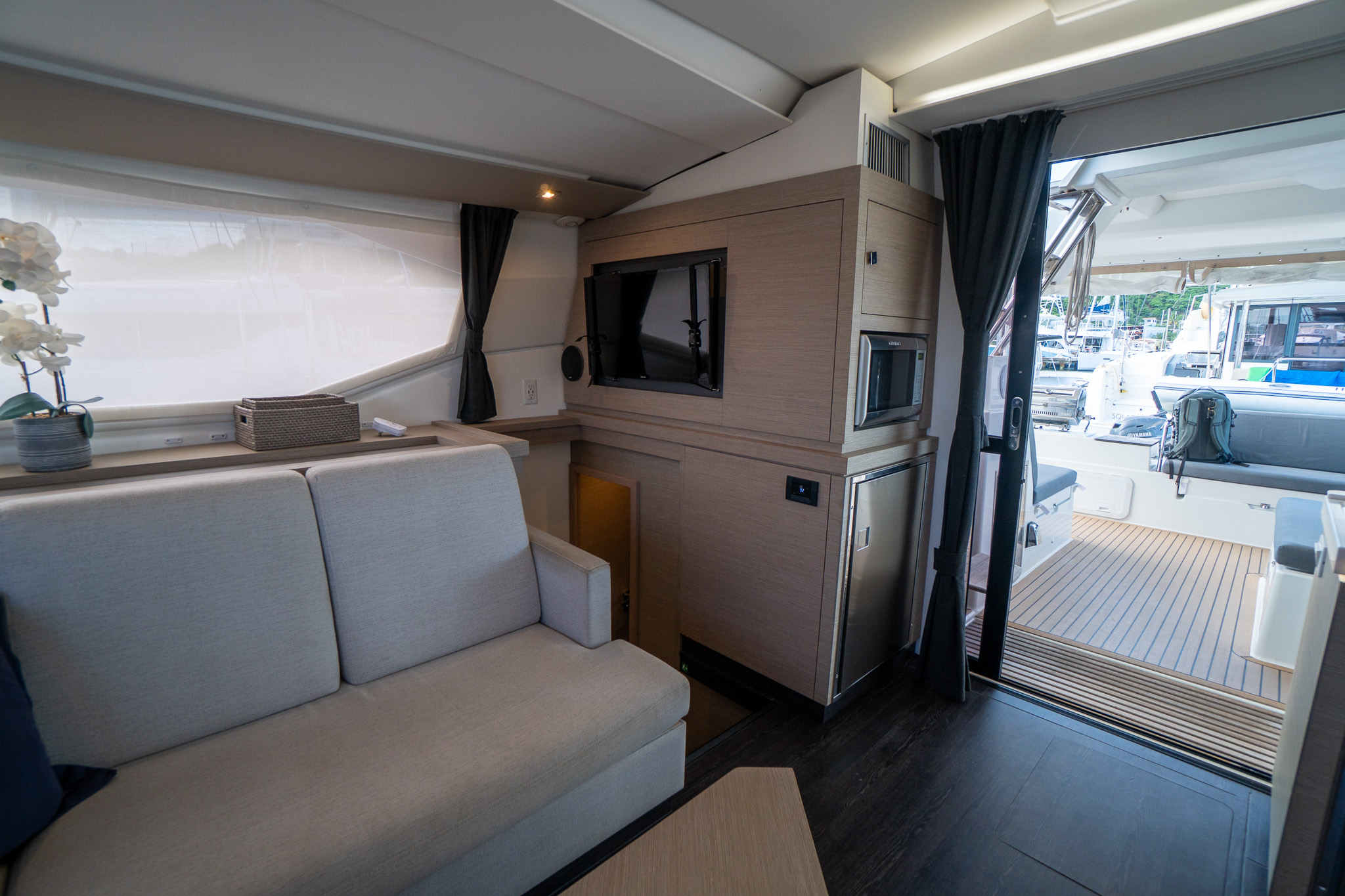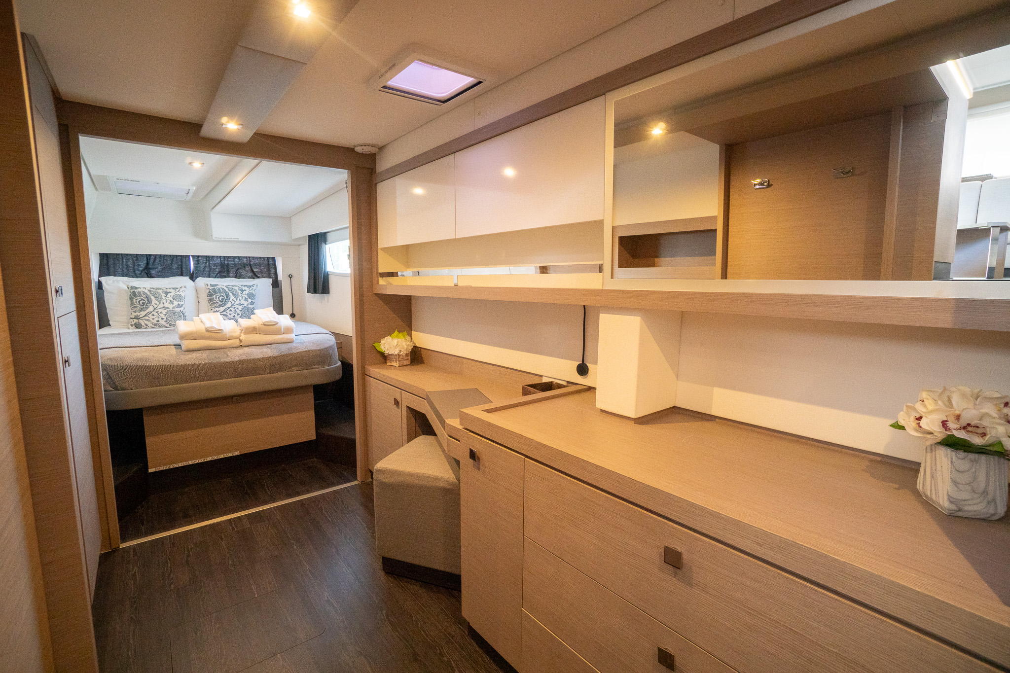 Hourglass is an absolute dream!! This Saona 47 has three staterooms, including a beautiful and spacious Owner's Suite. Unmatched in performance and safety, the Saona 47 is built with high-quality materials and designed for stability, providing outstanding performance on the water. The spacious deck layout allows for ease of maneuverability, facilitating seamless navigation and handling for a smooth, worry-free sailing experience. Designed with ease of maintenance in mind, this catamaran provides convenient access to all mechanical and electrical systems.