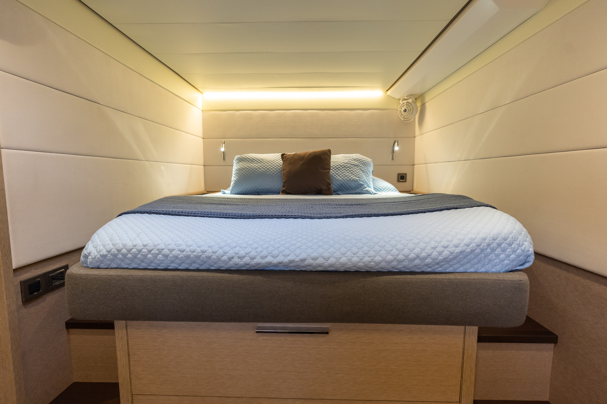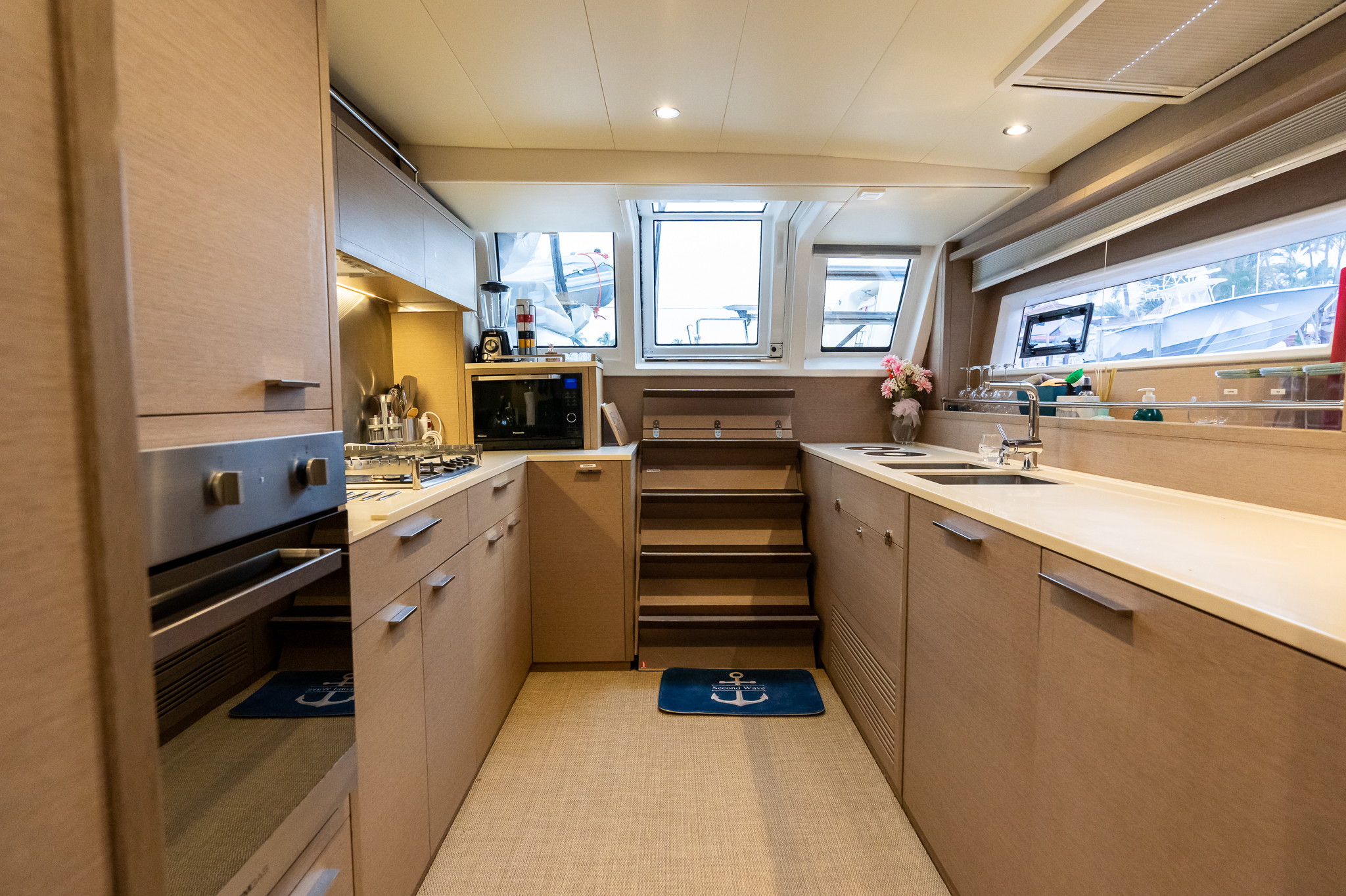 The Lagoon 620 stands as the epitome of success in the 60-70 feet catamaran class, and the collaboration of a seasoned owner with 40 years of bluewater sailing expertise, an experienced captain, and Lagoon lead to the launching of Second Wave. Tailored for a remarkable World ARC journey, the seller, accompanied by family and friends, navigated this exquisite vessel, which remains unparalleled in its quality, equipment, and maintenance within the Lagoon 620 Essence category. Featuring an impressive sail package comprising of a Hydranet mainsail on a carbon fiber canoe-style boom, a genoa, staysail, D4 Code Zero, and an asymmetrical spinnaker, Second Wave boasts upgraded electric winches for effortless power management. Maneuvering seamlessly with her twin upgraded Volvo D3-150 engines, Gori folding props, and a 24V bow thruster, Second Wave ensures a dreamlike experience when handling close-quarter situations or navigation under power. Among Second Wave's myriad factory and after-market features, some noteworthy ones include: