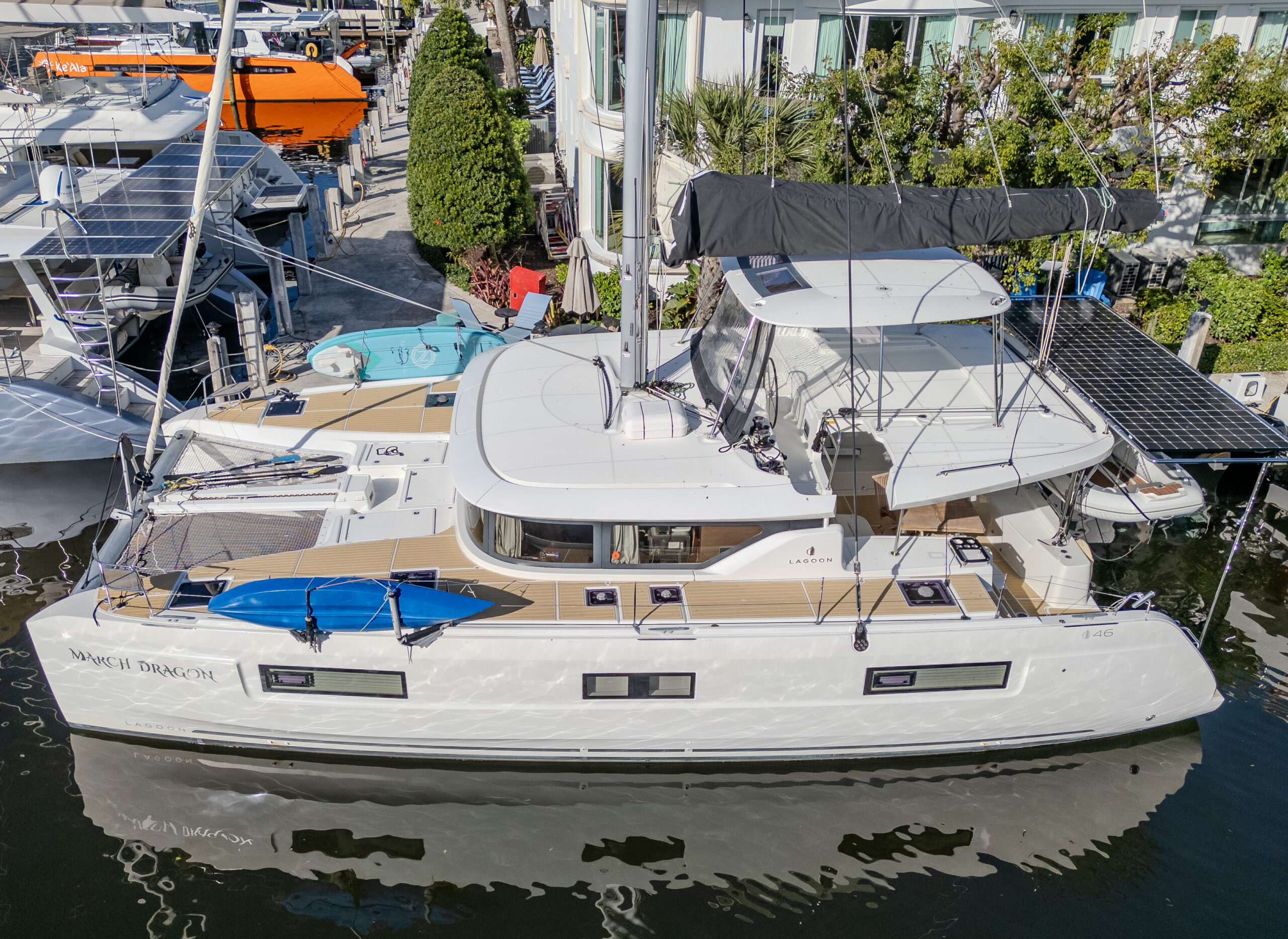 March Dragon is the most well-equipped Lagoon 46 4-cabin layout currently on the market in the United States. She has been setup to be the perfect liveaboard catamaran for a family to set off on their next adventure.