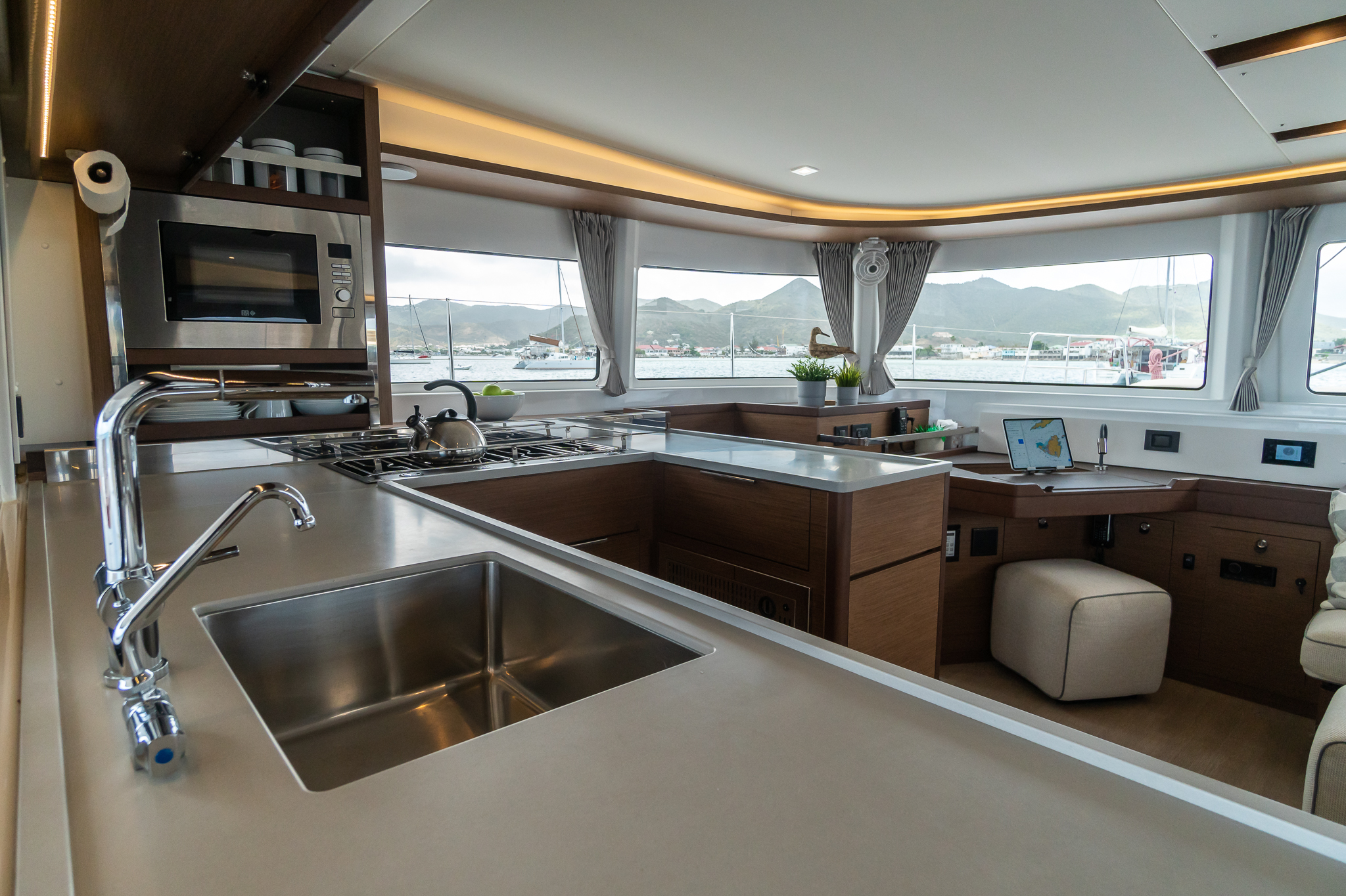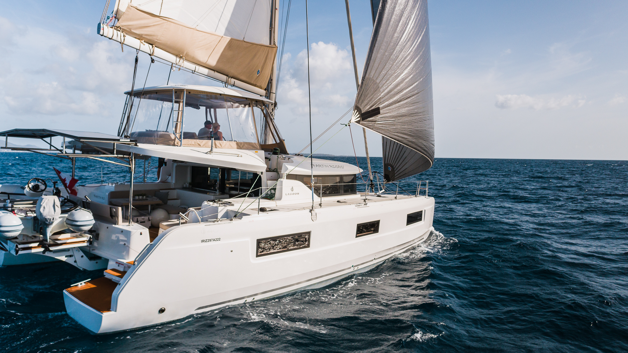 The Lagoon 46 has been regarded as one of the best sailing catamarans in her class. With a wide beam and more freebaord than other boats in her class she feels much larger than most 46ft catamarans. Don't let her volume fool you into thinking she can't sail. With a powerful squaretop main, Genoa, and Code Zero Fartin Roses is a great sailing cruising catamaran. While out sailing her for the film shoot we expereinced everything from 8kts of breeze to over 20kts of breeze, and she sailed effortlessly.