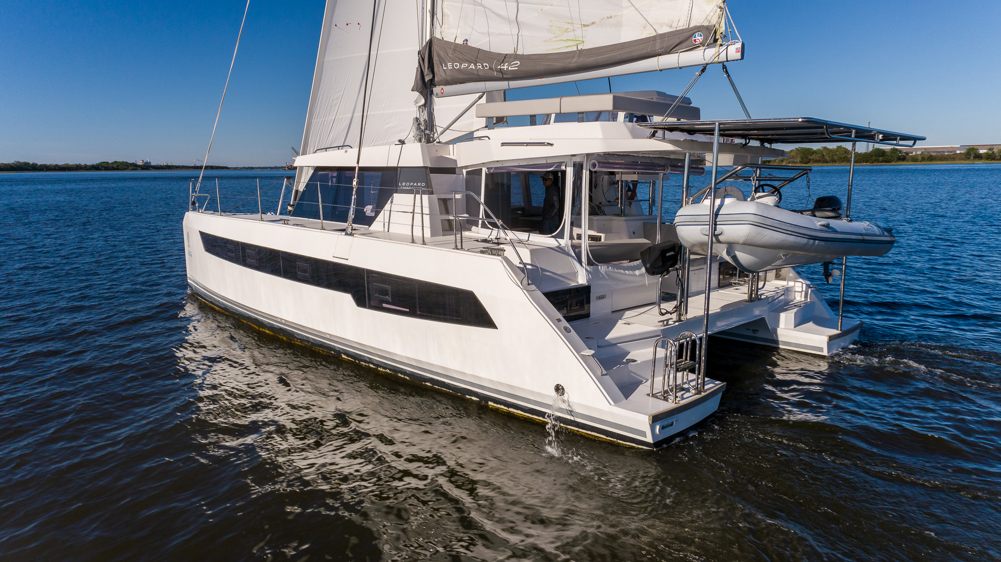 This one-owner 2022 Leopard 42 sailing catamaran, GREY GHOST, is well-appointed and ready to cruise. The Leopard 42 won Cruising World's Boat of The Year award for its class upon debuting in 2021. It's easy to see why the editors chose the Leopard 42; it is an innovative and boundary-pushing design with great sailing characteristics that packs a ton of comfort and utility into the sub-45' catamaran range.