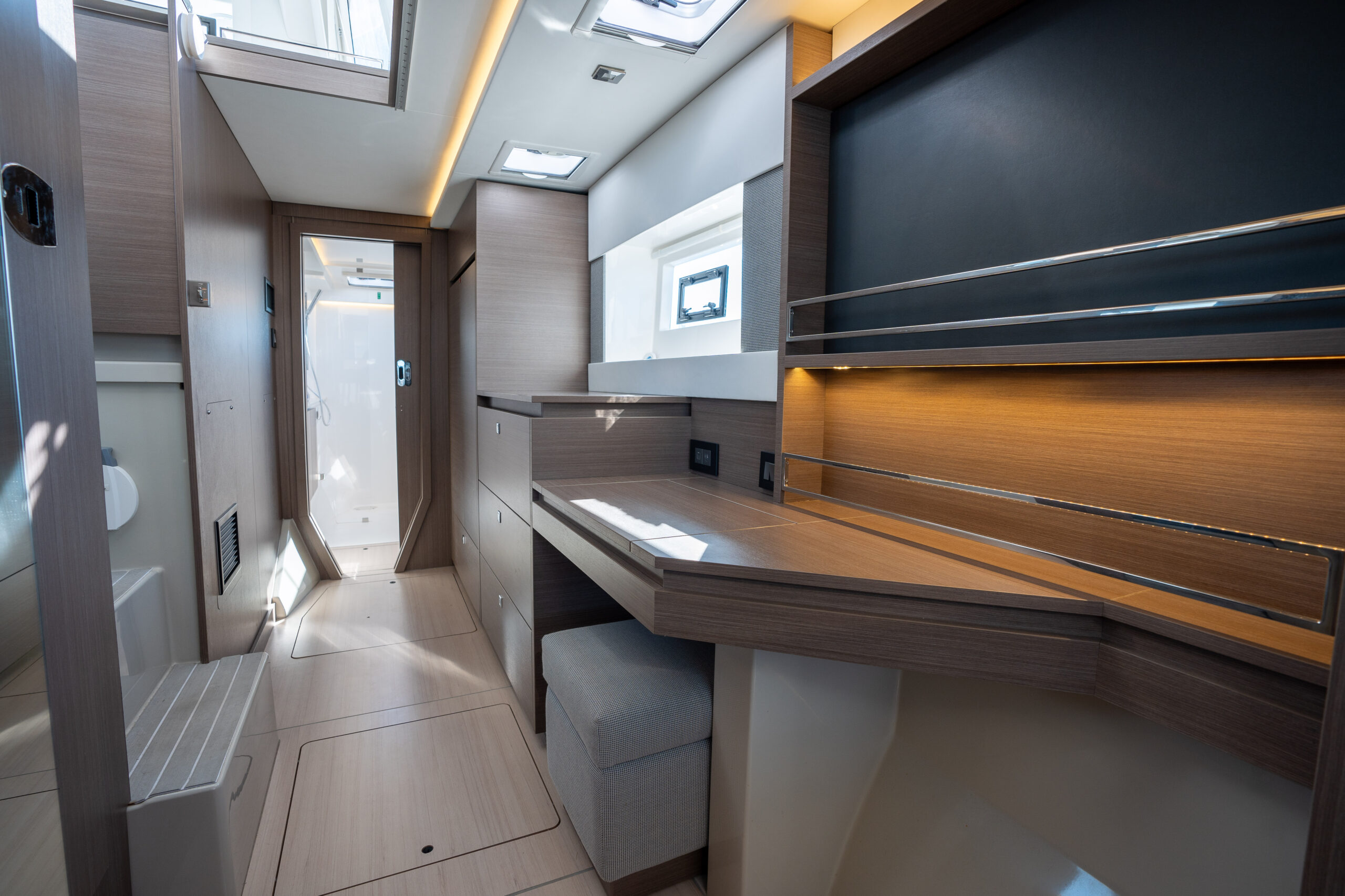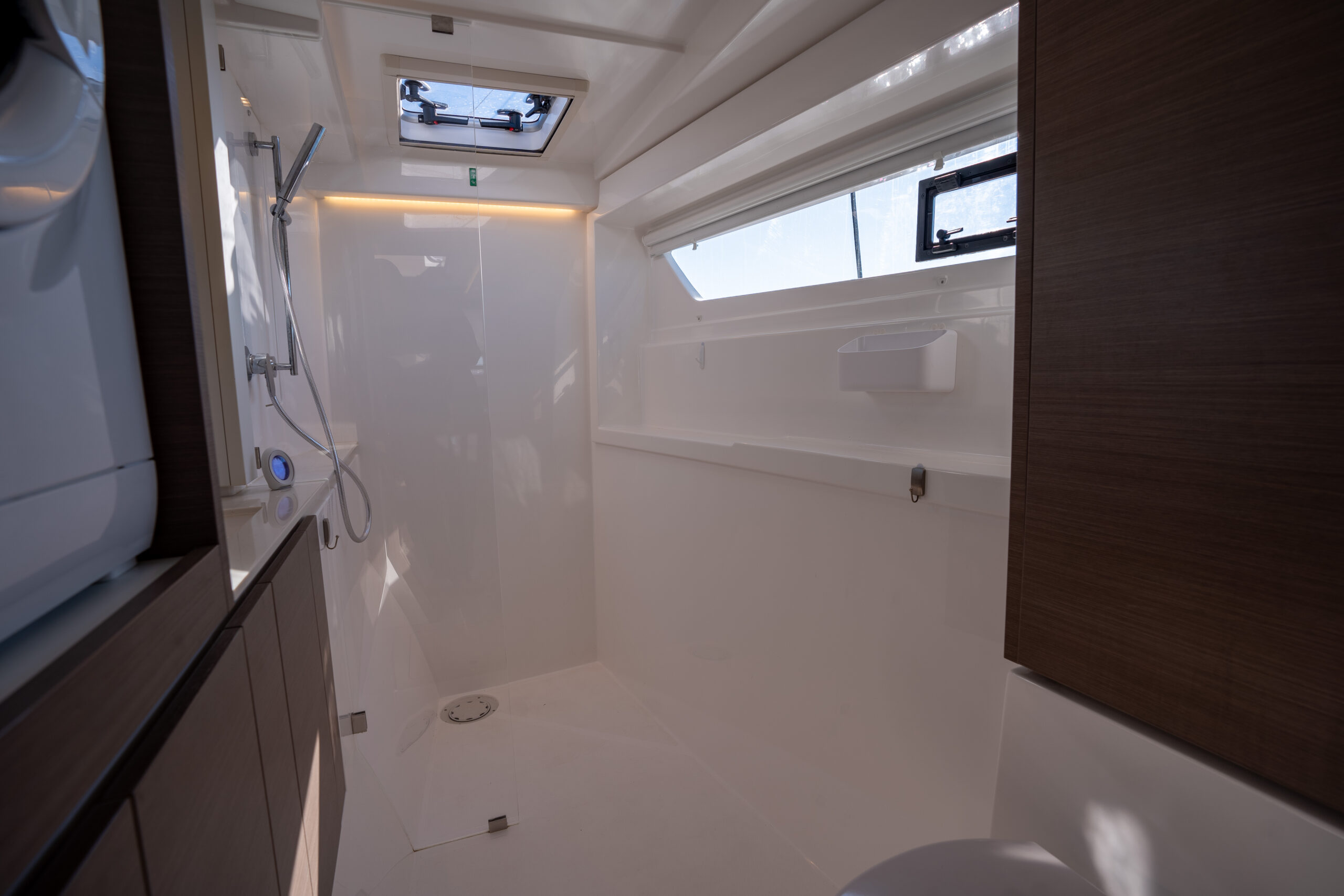 Available in 3 cabin/ 3 heads and 4 cabin/ 4 heads, all cabins include their own private en-suite heads. All heads include their own designated shower area; a feature not currently found on catamarans in this size range.