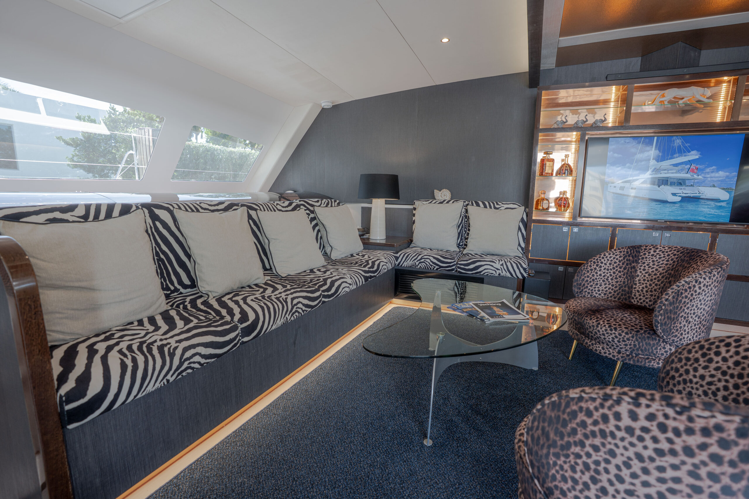 The 2023 Silhouette 80 is packed with premium yacht features that come as standard, setting it apart from competitors. These include a carbon fiber mast and boom, Aramid side stays, powered self-tailing winches, high-quality sails, motorized blinds, frameless glass shower cubicles, laminated glass windows, a large LED TV, and lightweight carbon fiber gangplanks. While these features are often optional on other vessels, they come standard on the Silhouette 80, ensuring long-term value and protecting owners' investments.