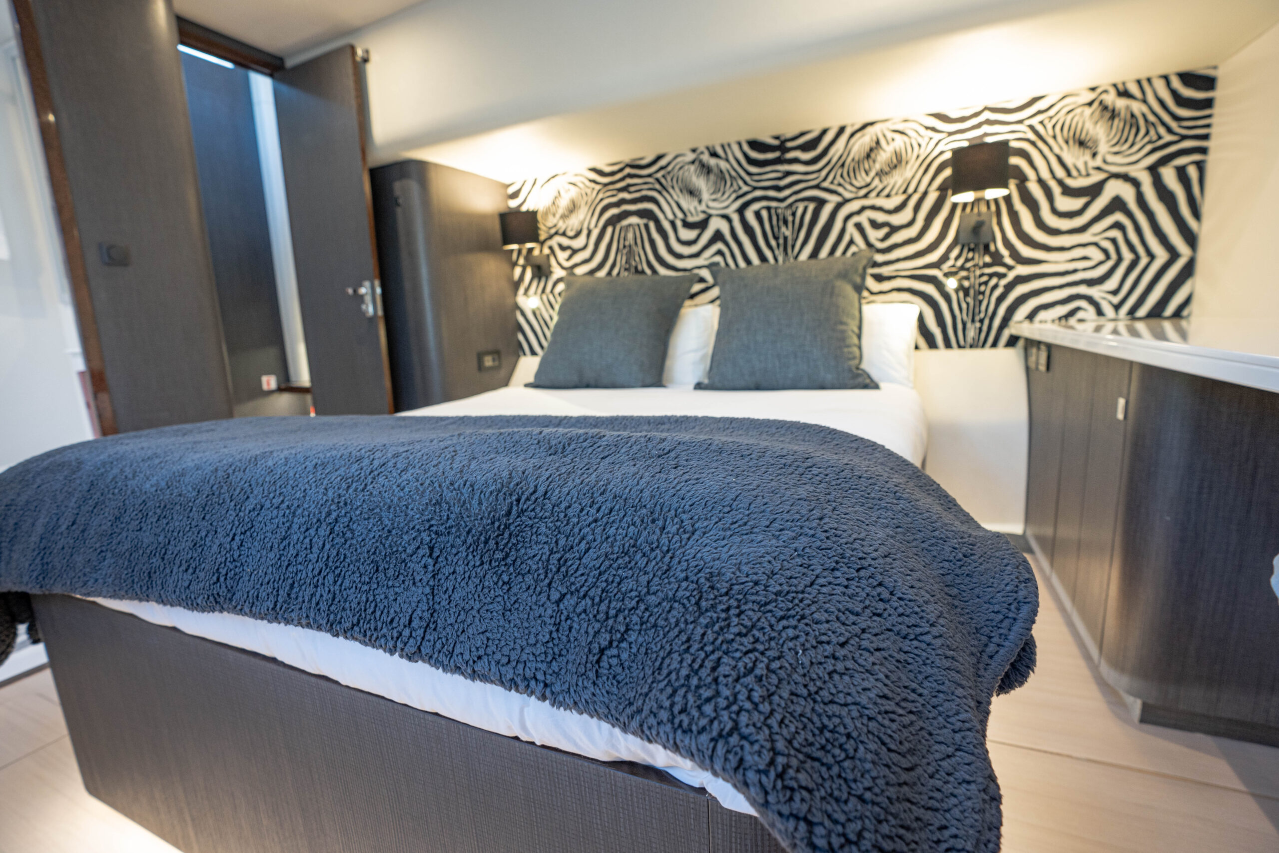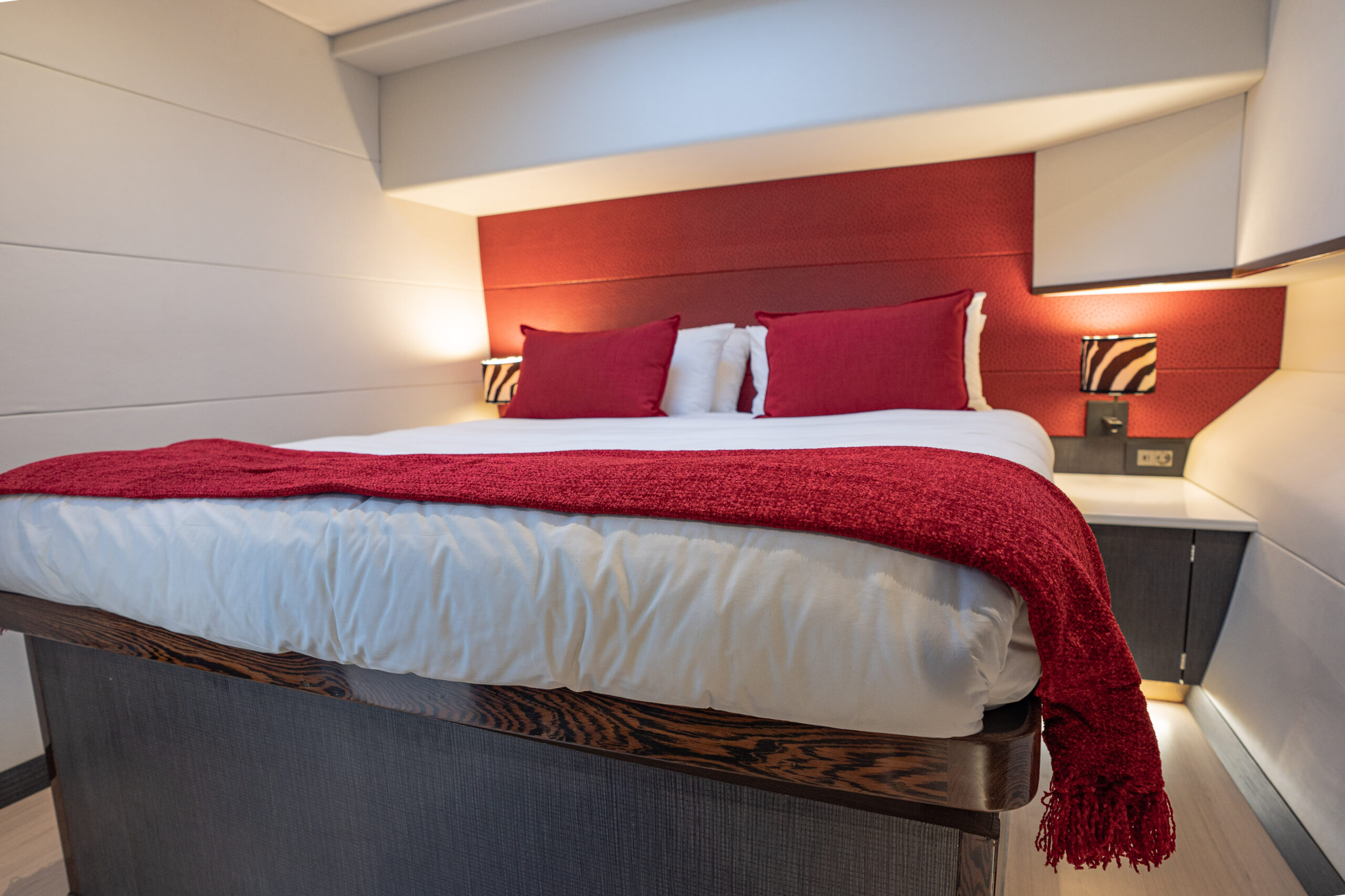 Each cabin features a queen-size bed, private en-suite bathroom, and refined amenities, ensuring an exceptional experience. Panoramic windows provide stunning sea views, making every moment unforgettable.