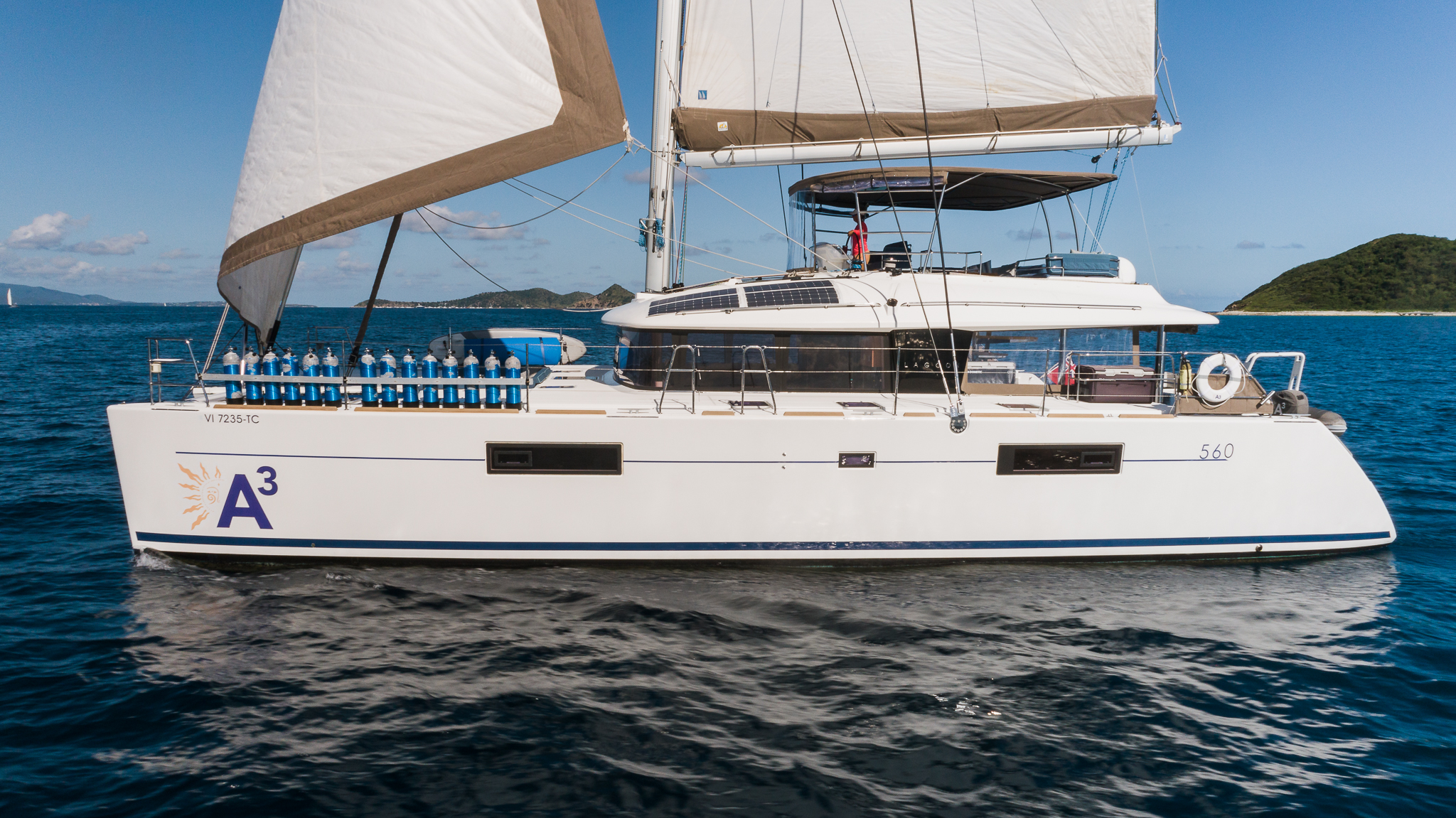 The Lagoon 560 is considered by many to be one of the best mid-fifty foot class cruising catamarans ever built. A3 is an example of what happens when an owner takes a phenomenal platform, puts a top-shelf professional crew onboard, and empowers them to maintain the highest standards possible.