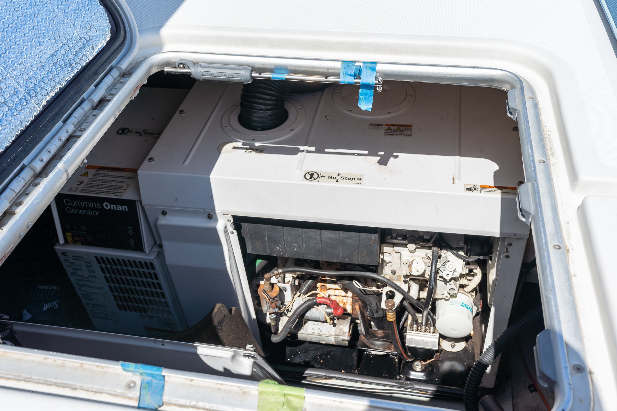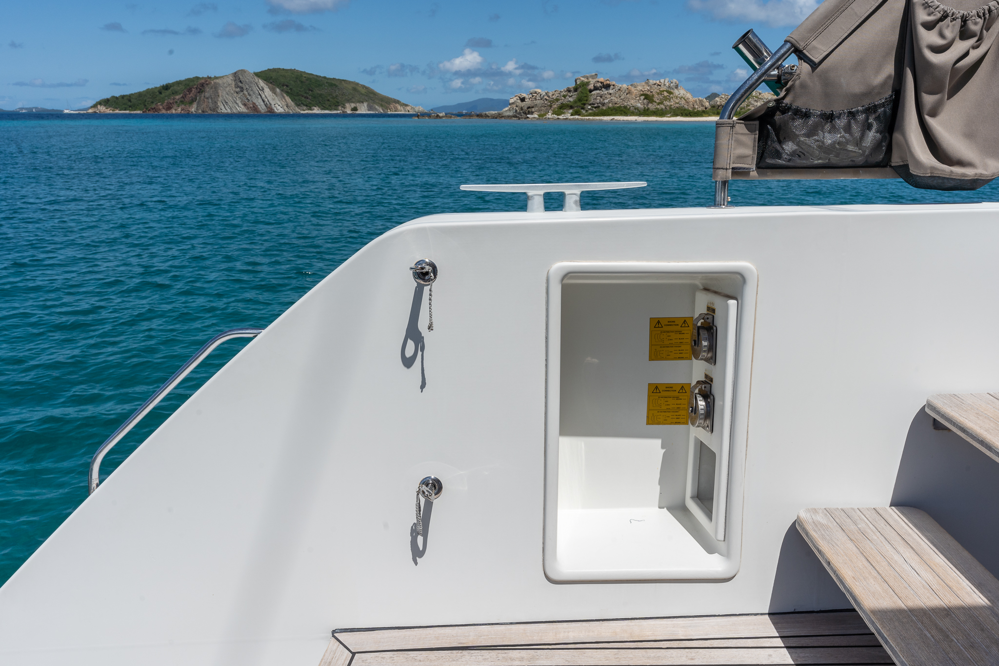 Engine access through large deck hatches Stainless steel gas struts on hatches