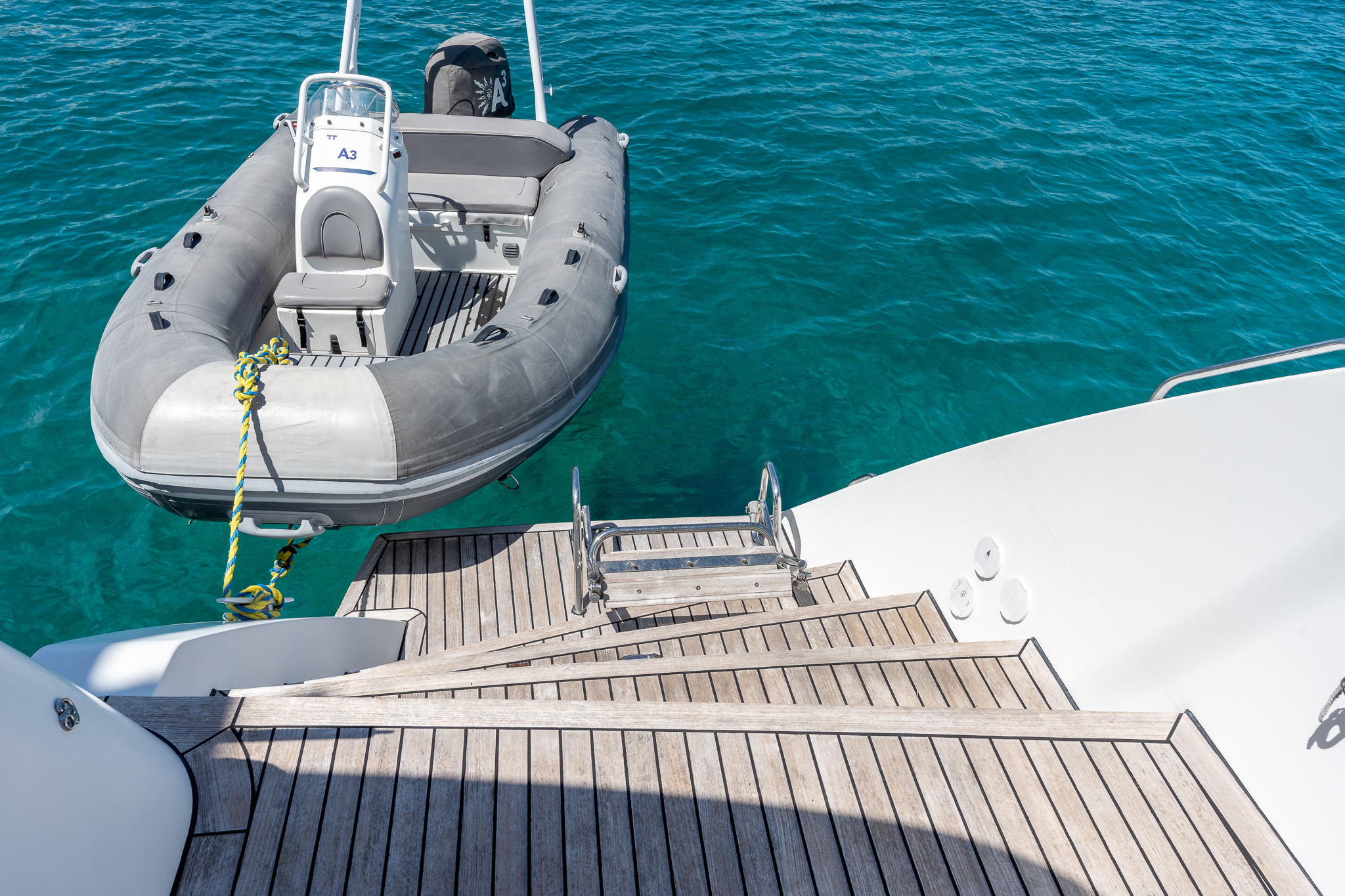 1 outlet per cabin (owner’s cabin: 2), 4 in the saloon, 4 in the galley, 1 per engine compartment, and 1 in the technical compartment