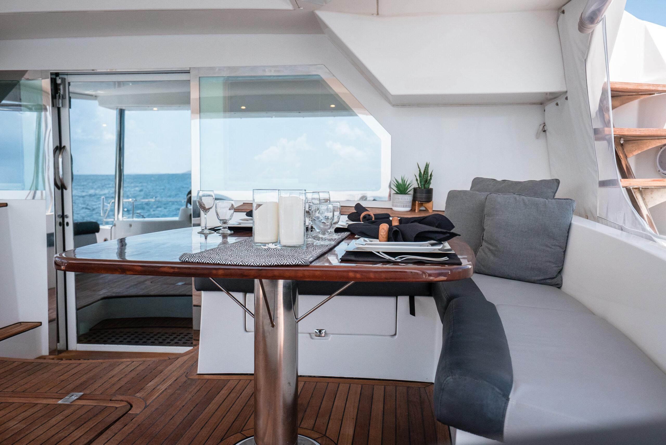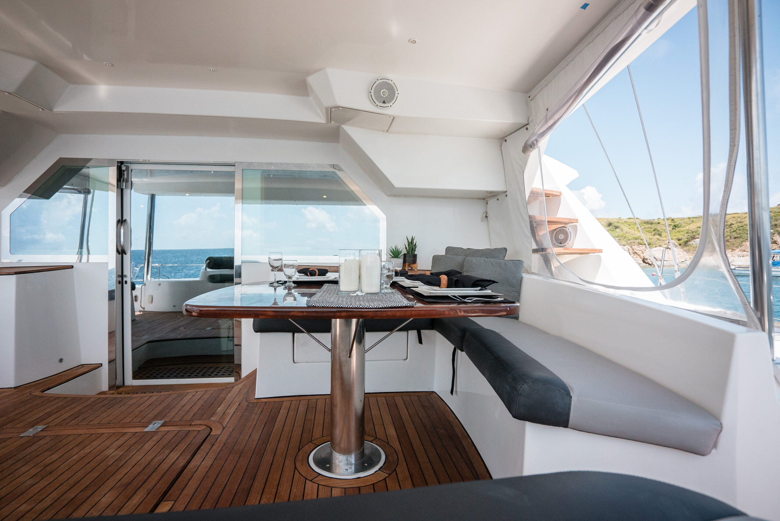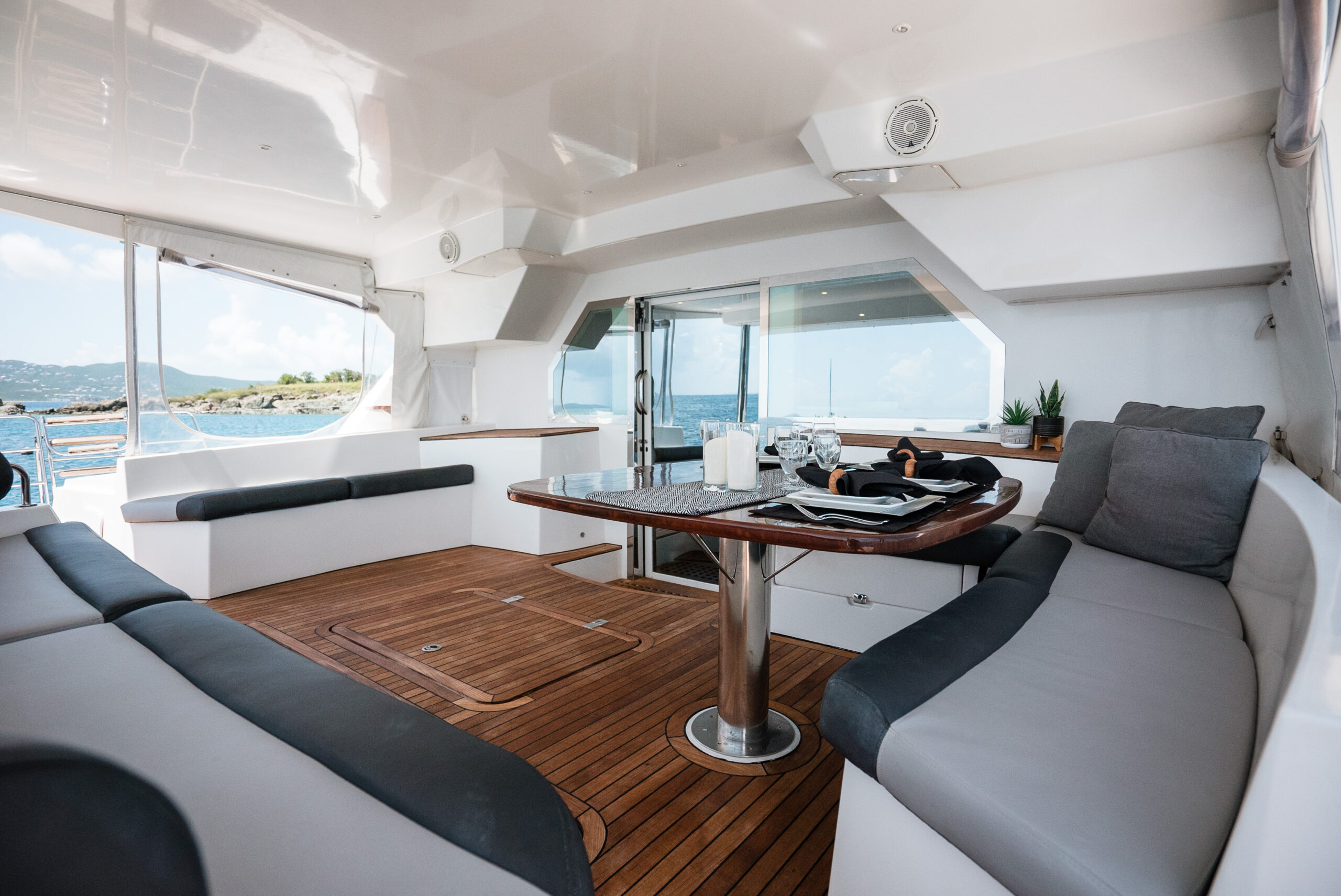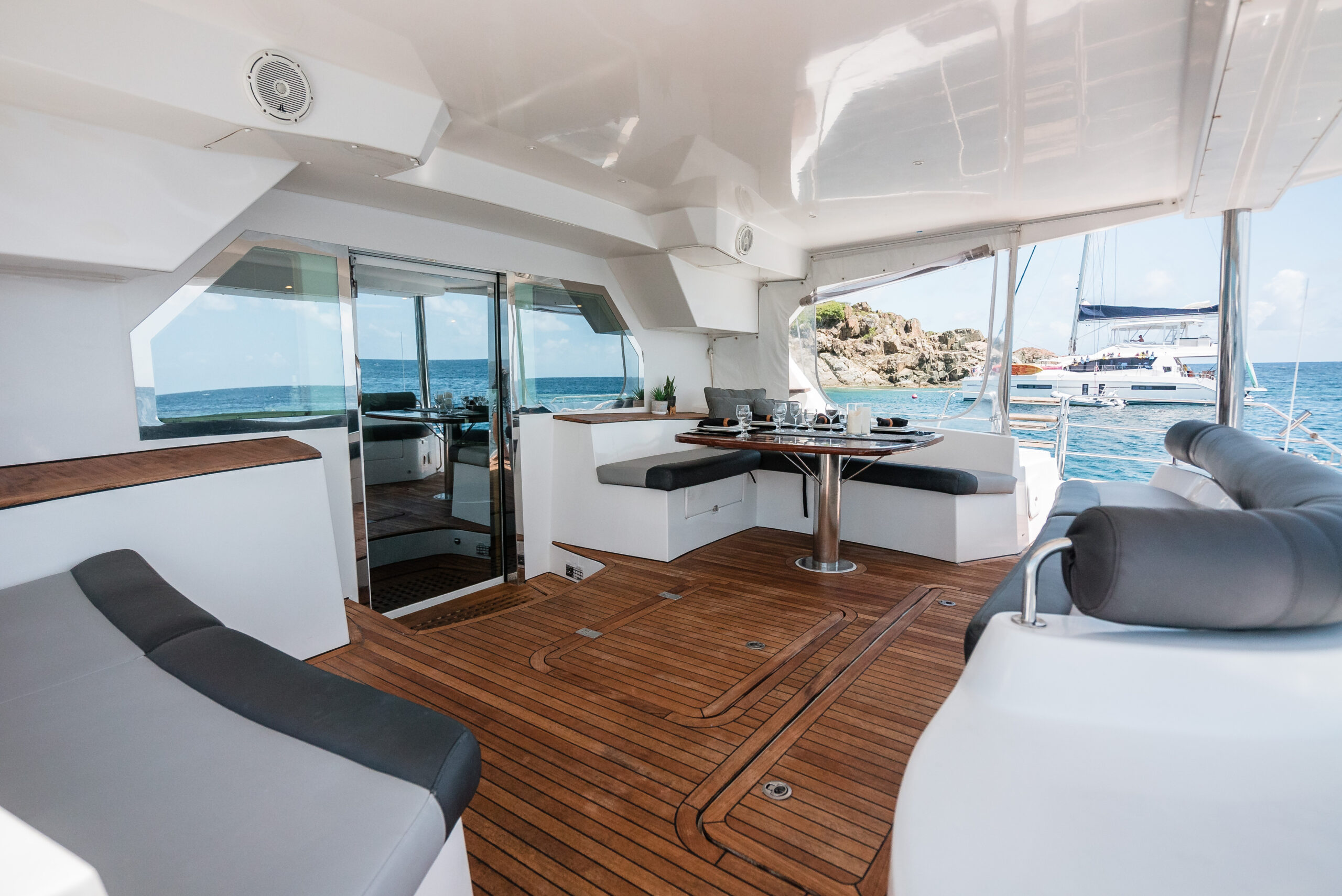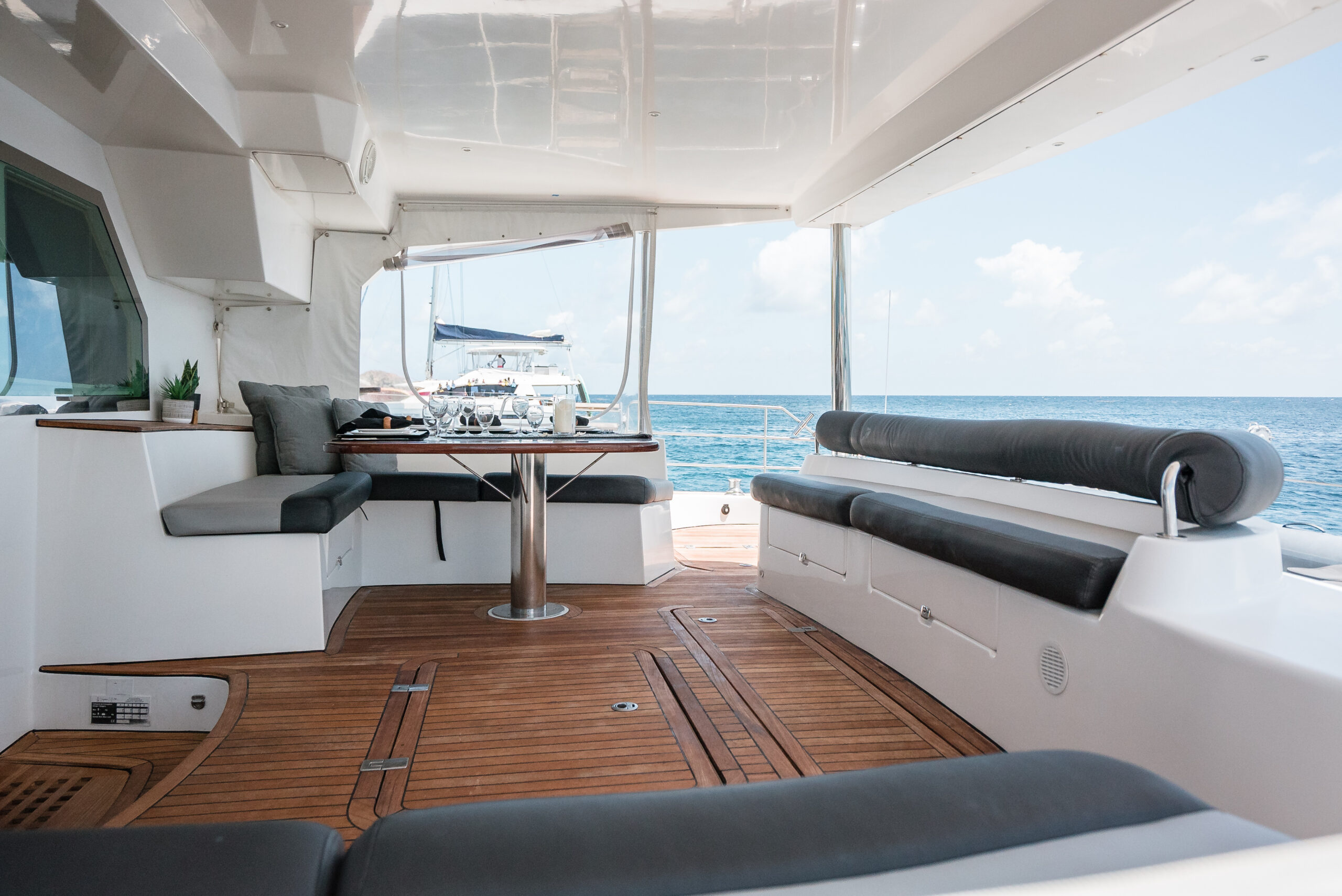 Anastasia completed a substantial refits completed in 2017 and 2019. The boat has been professionally maintained to the highest standards by a full time crew. She is currently being operated as a very successful crewed charter yacht business. There are currently over $300,000 in bookings for the 2021-2022 season. Of the 21 Privilege 615's built none have been maintained and upgraded to the standard of Anastasia. This PRIVILEGE 615 with her helm stations at mid-level between the fly bridge and the deck, and the sunbathing mattresses at the fly, allows the sailing passion to be easily shared with family and friends. Her very spacious cockpit and cozy interior invite all to enjoy a serene life onboard.