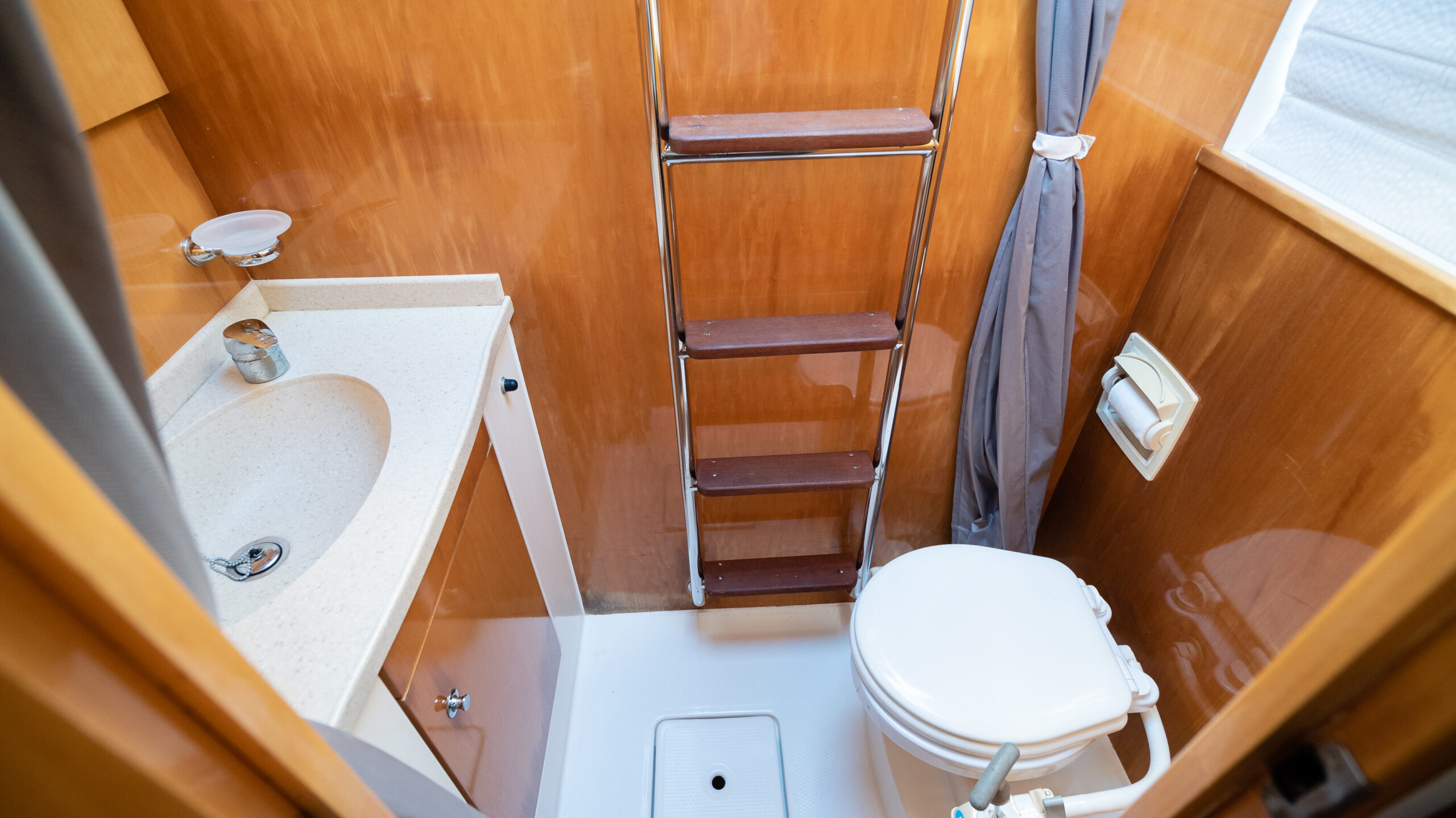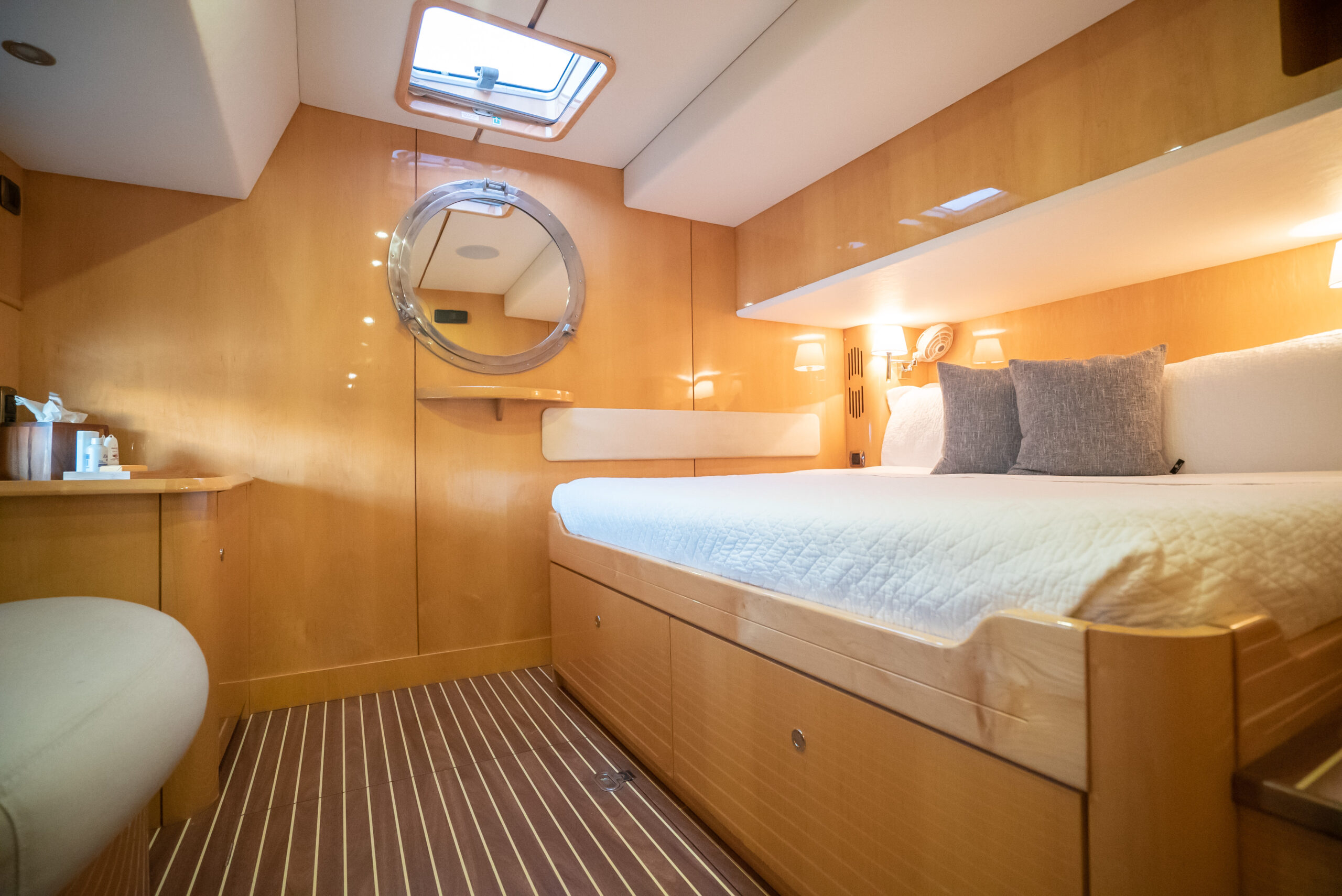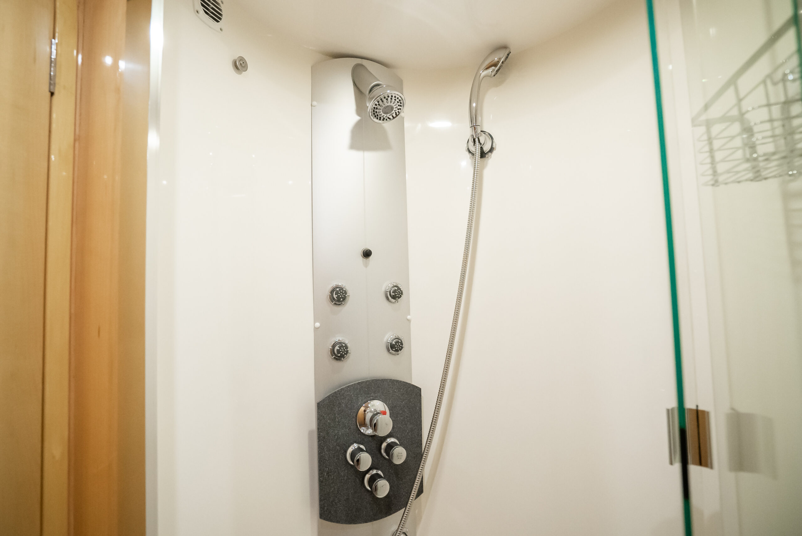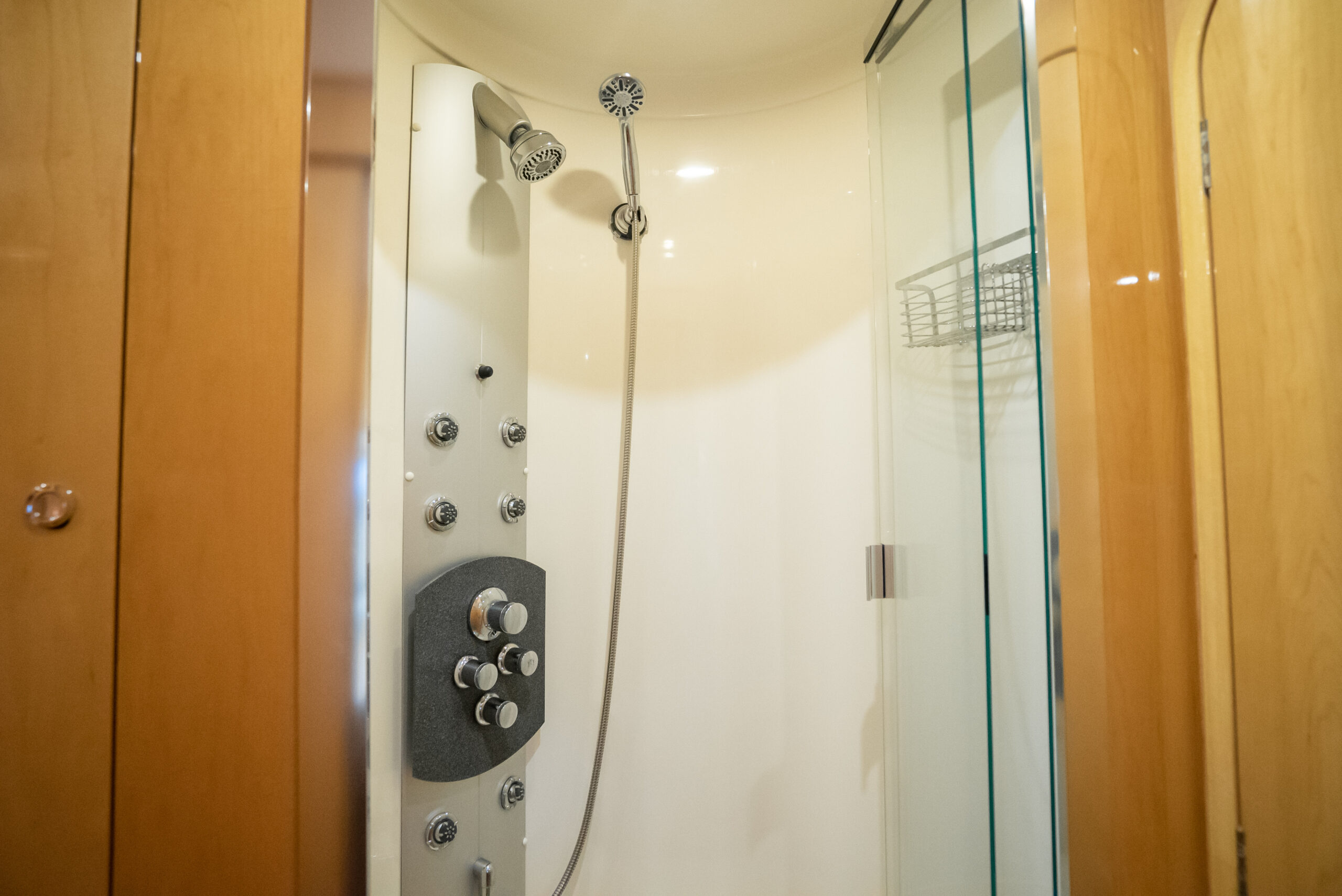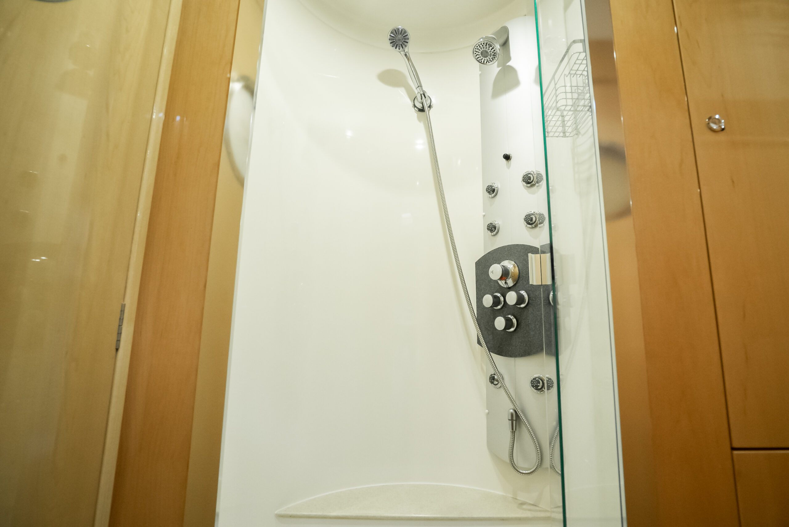 - En-suite has separate shower forward on port side with multi-spray jets