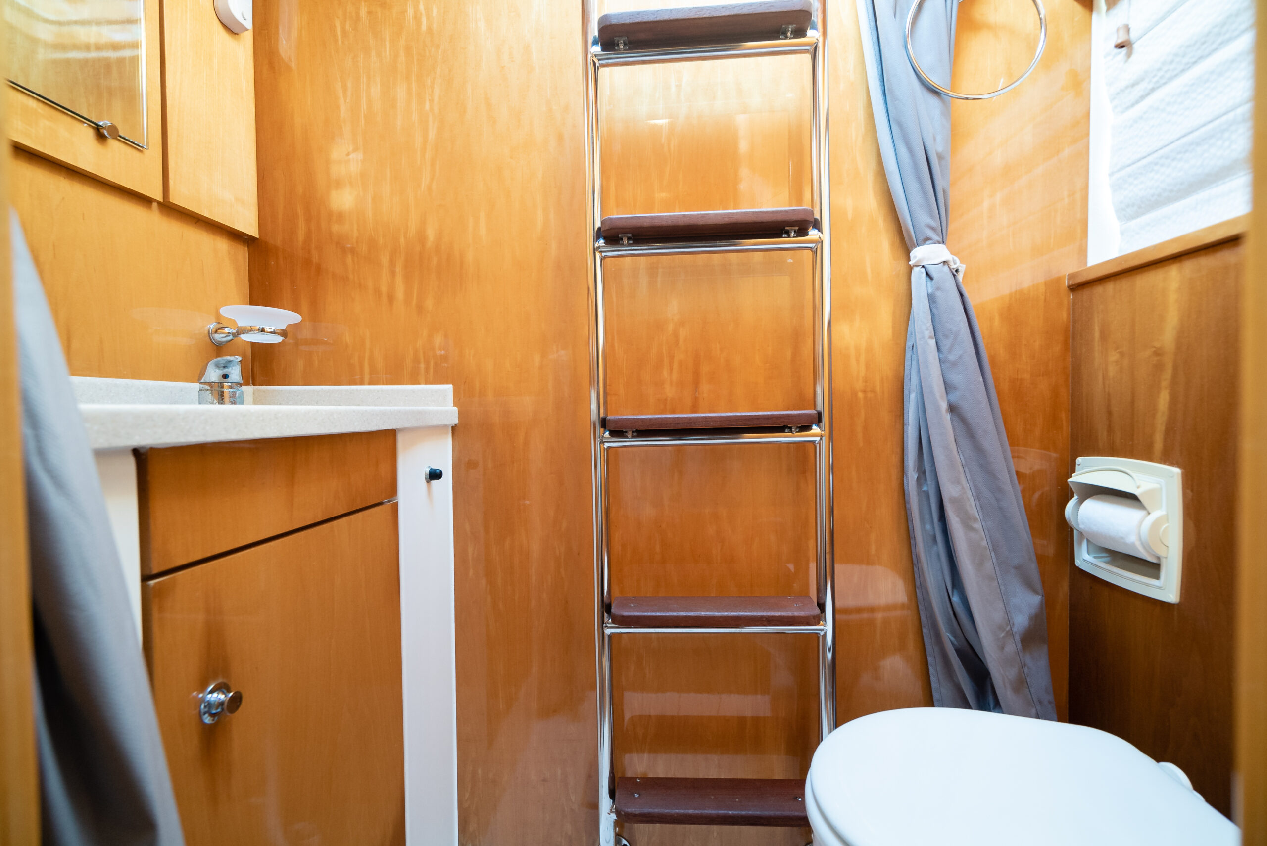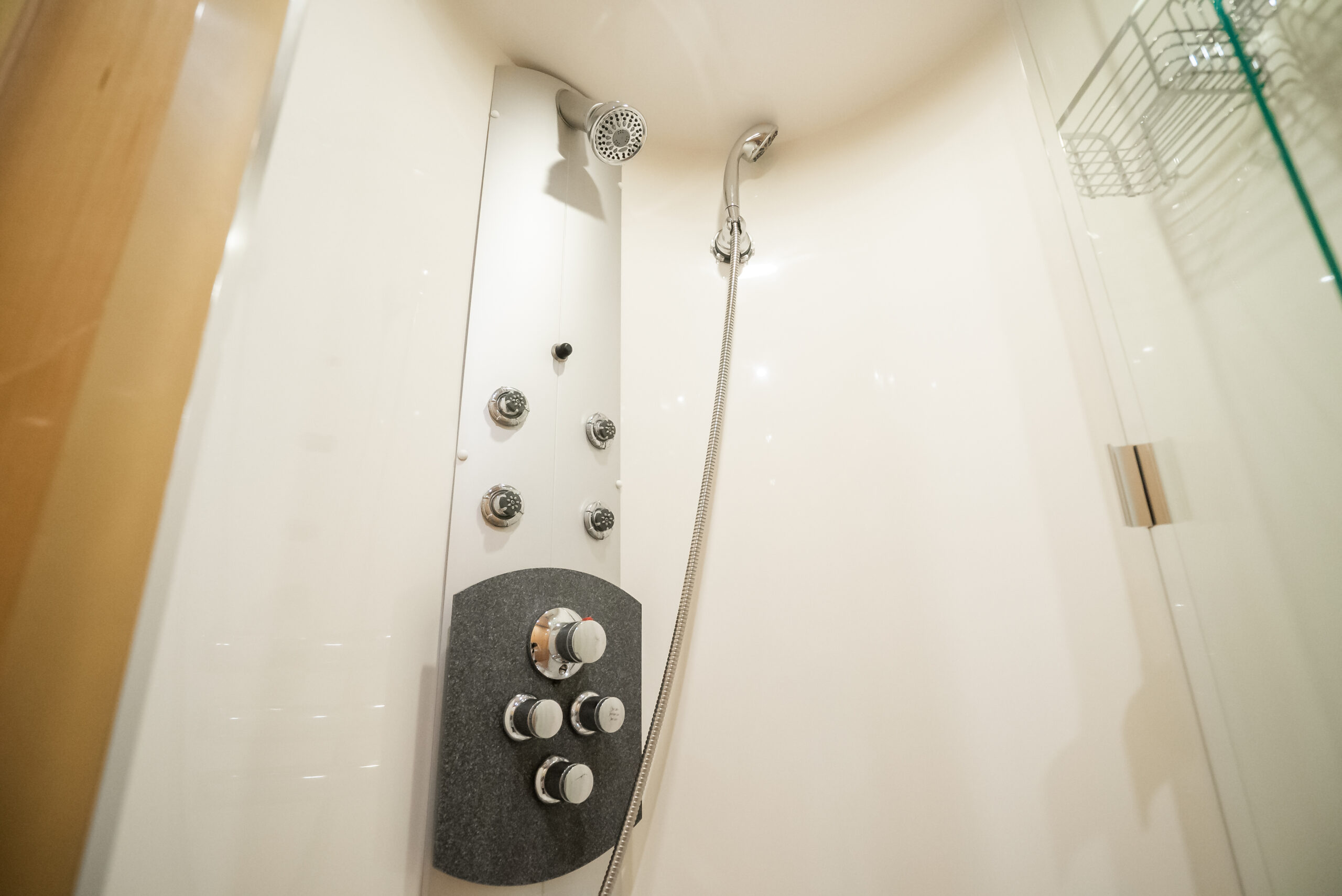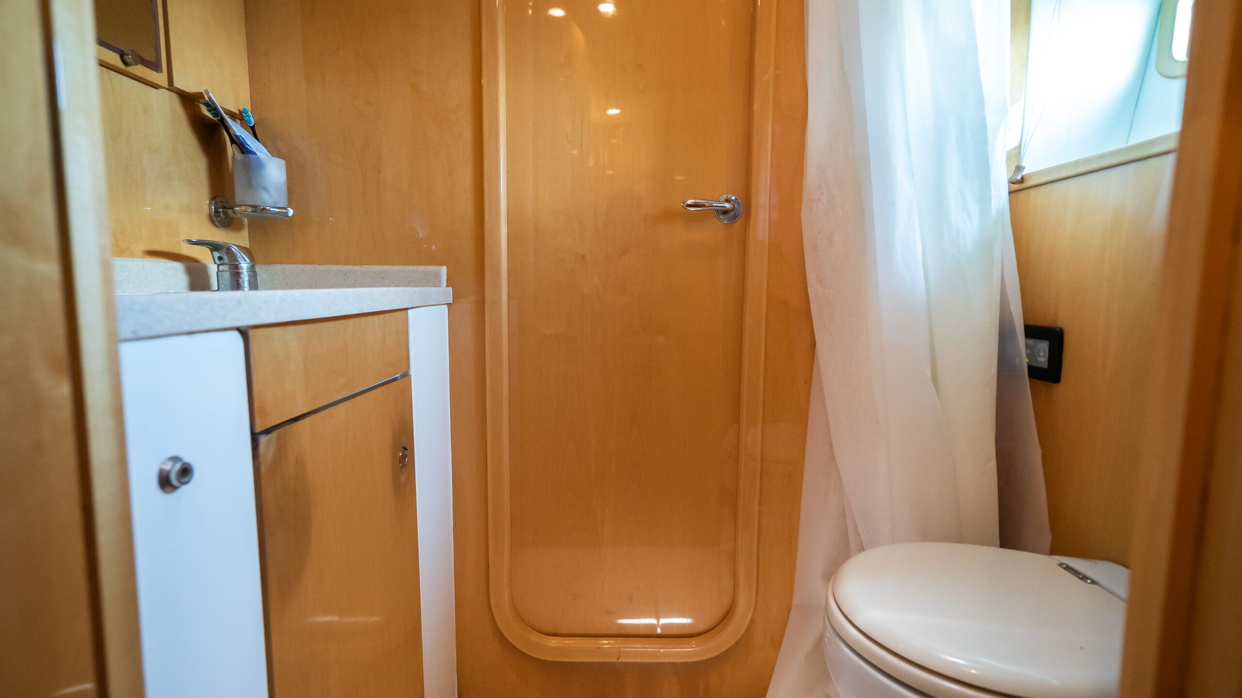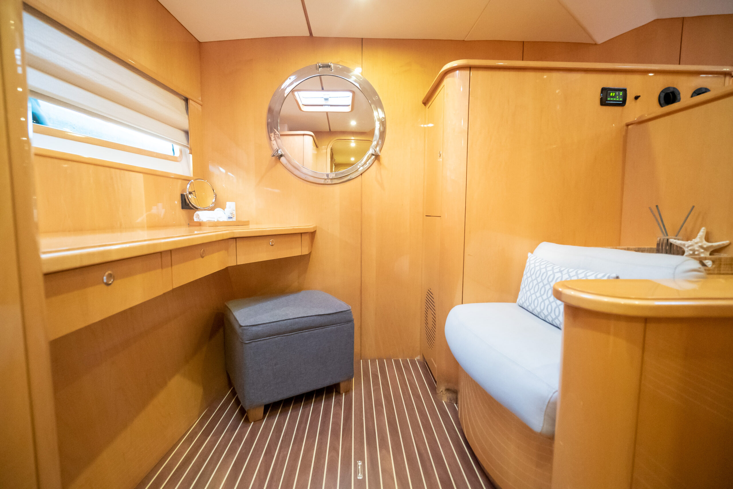 - En-suite has separate shower forward on port side with multi-spray jets