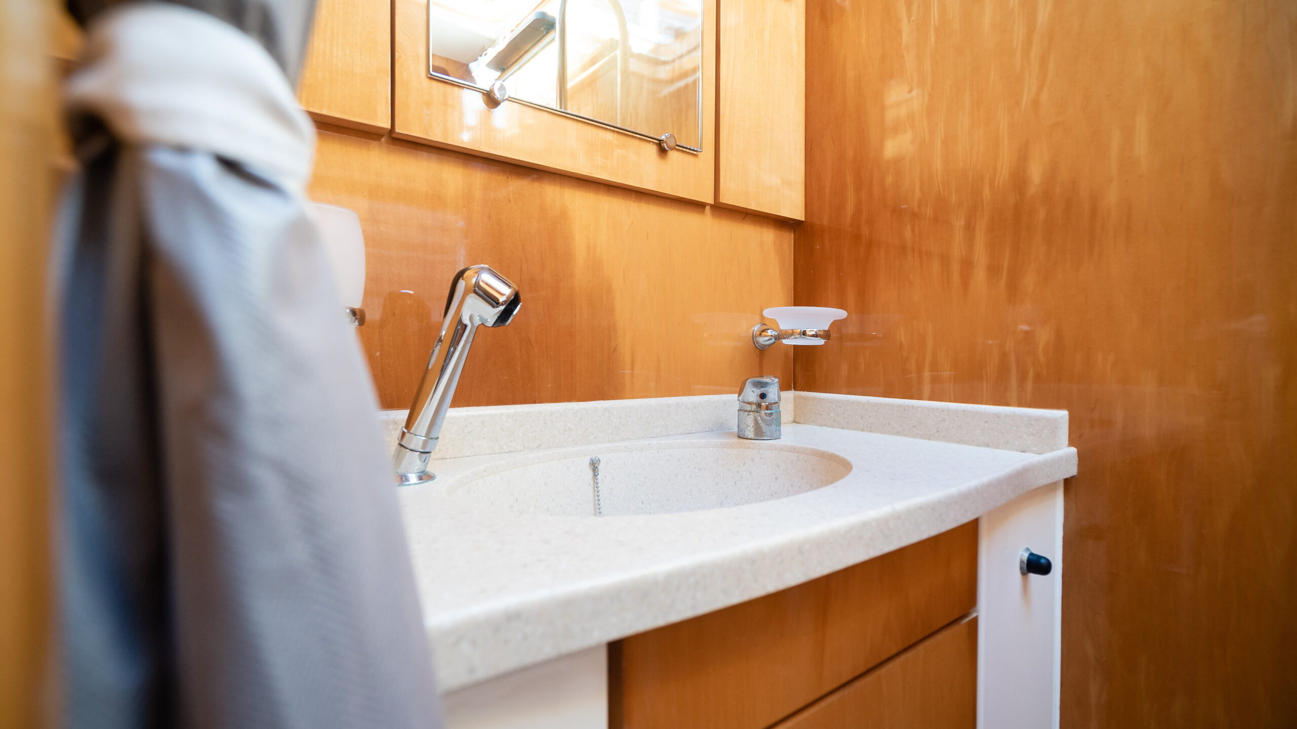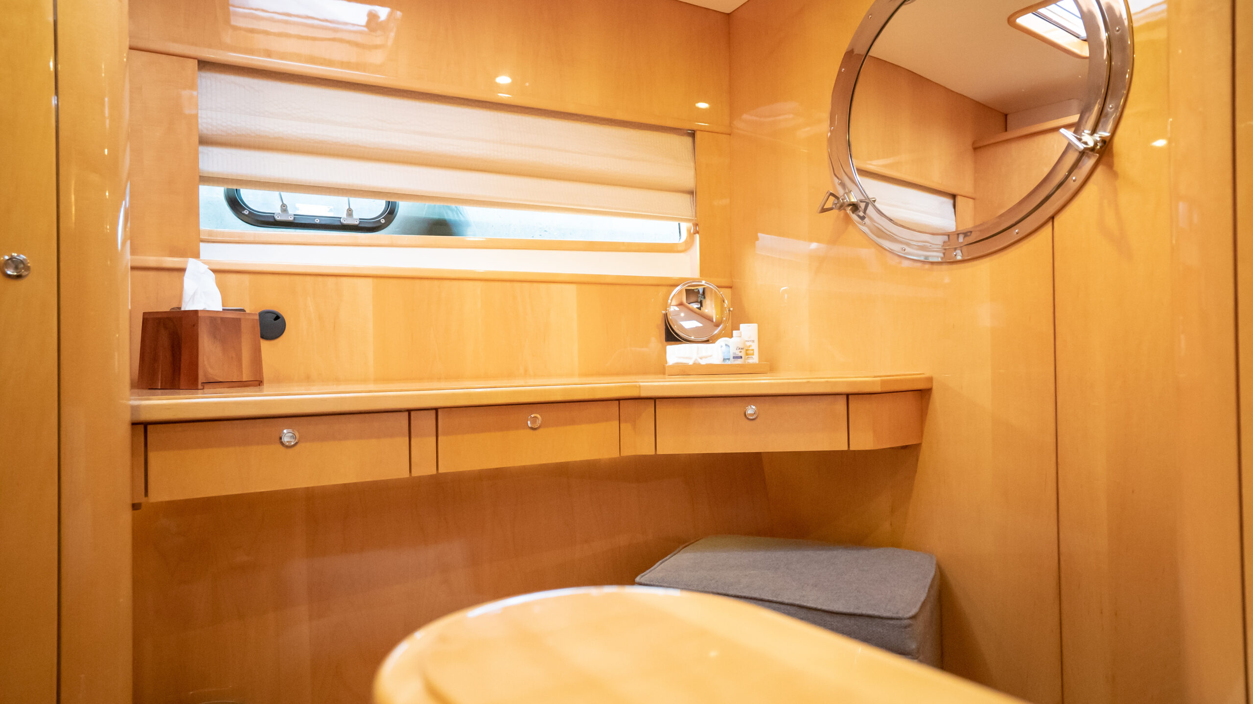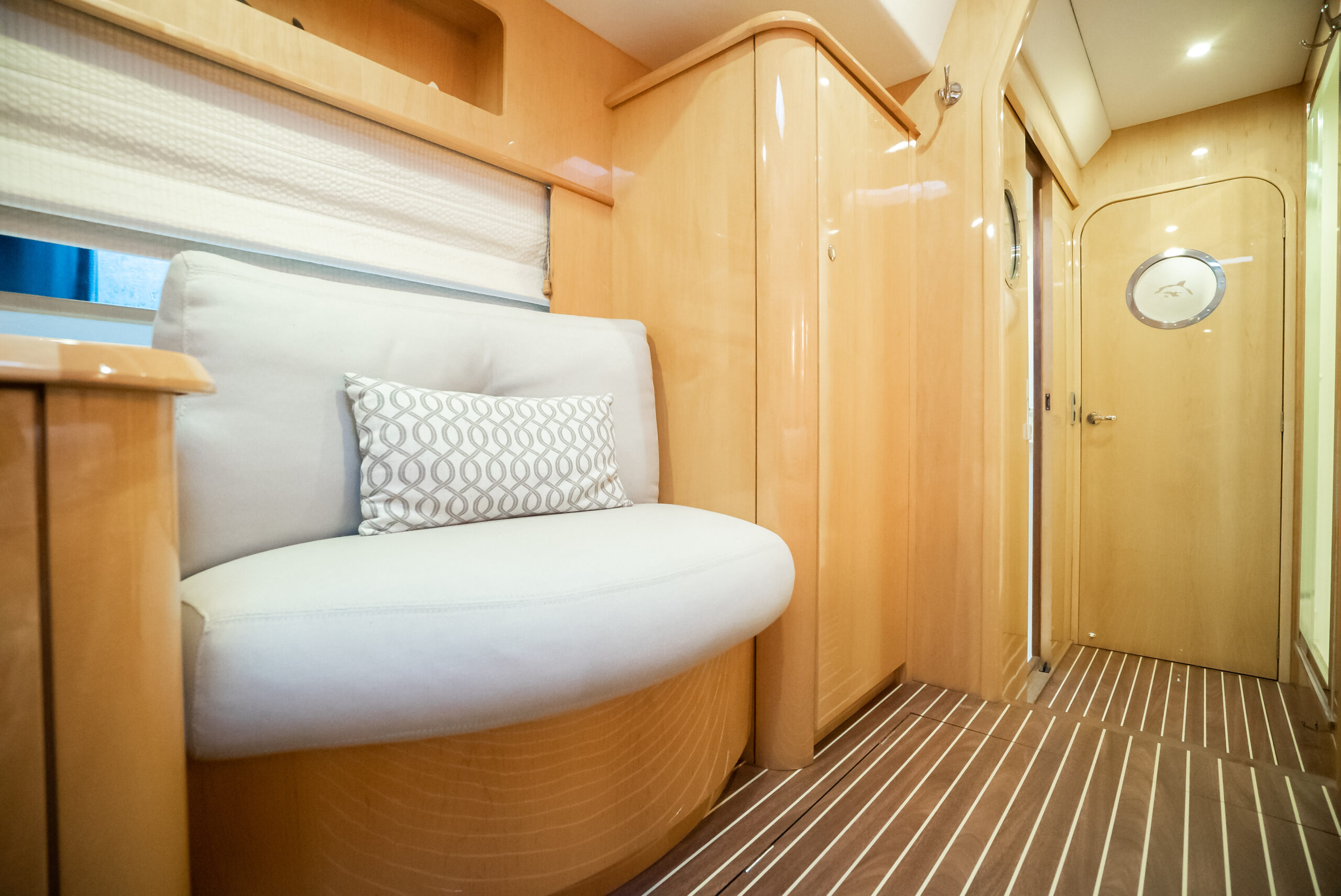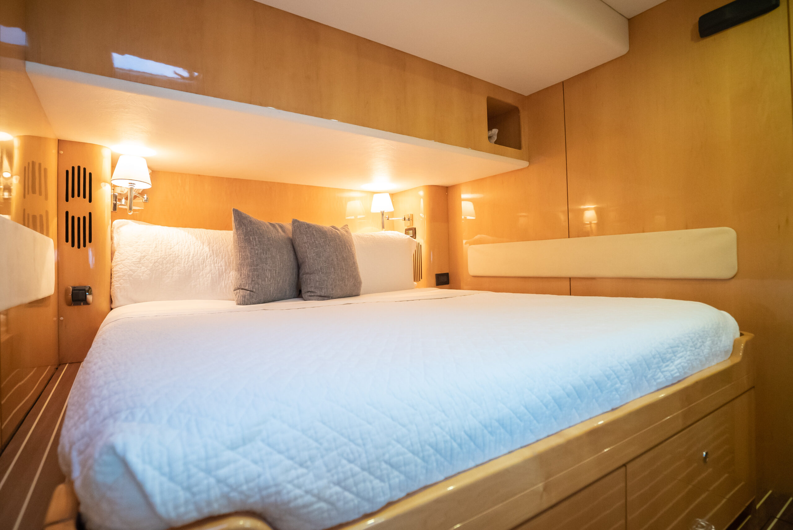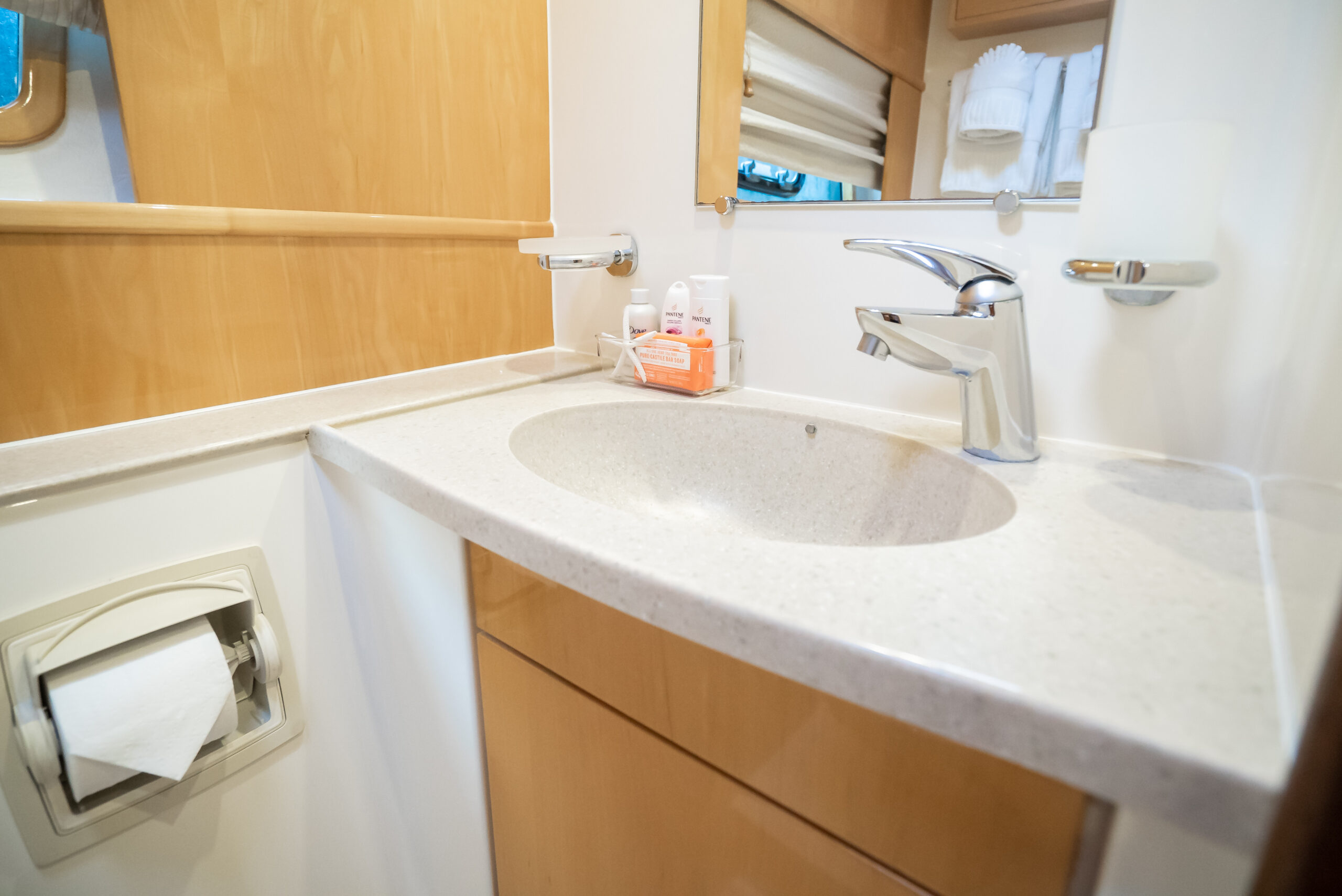 - En-suite has separate shower forward on port side with multi-spray jets