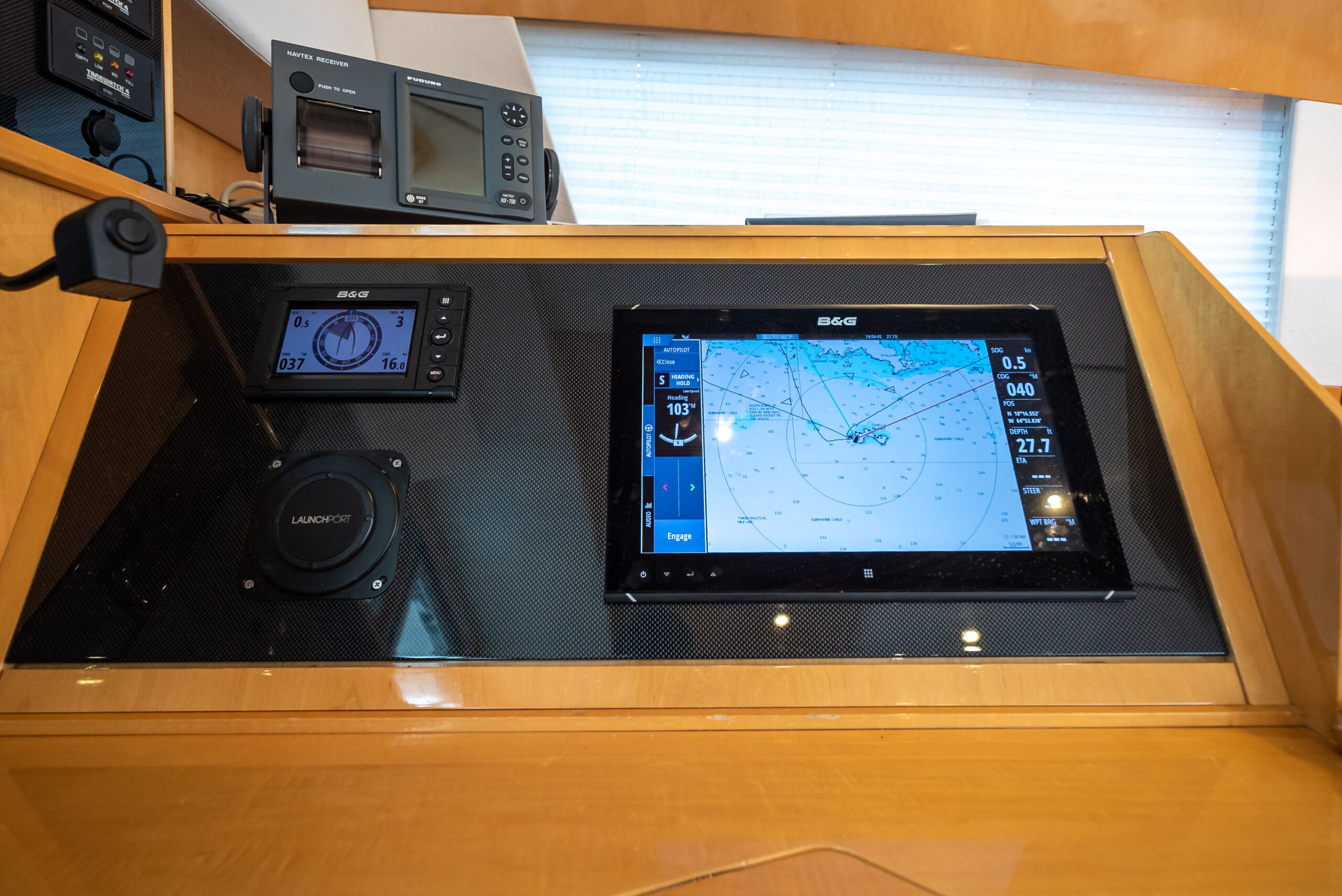 - All new B&G electronics on both upper helms and navigation station
