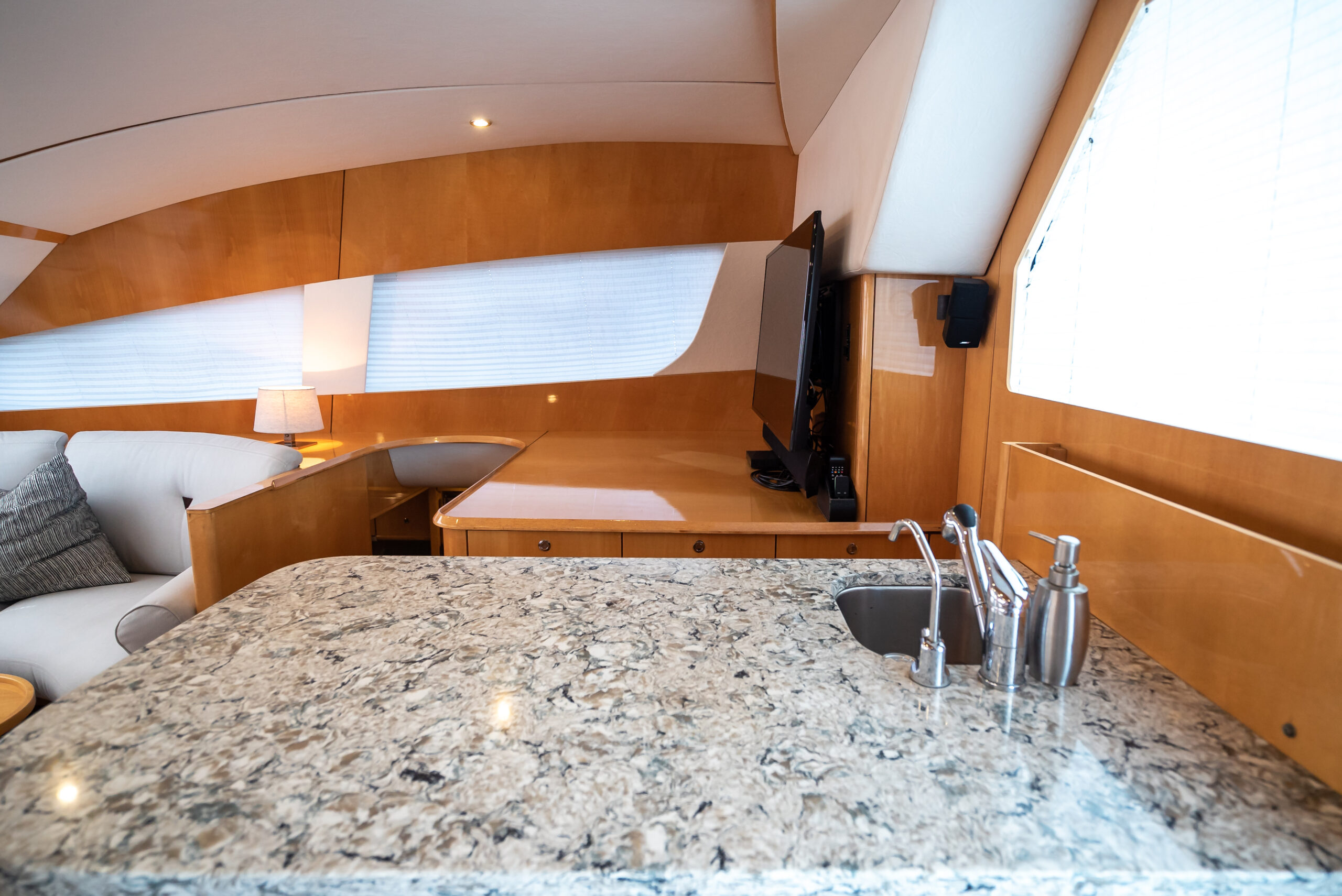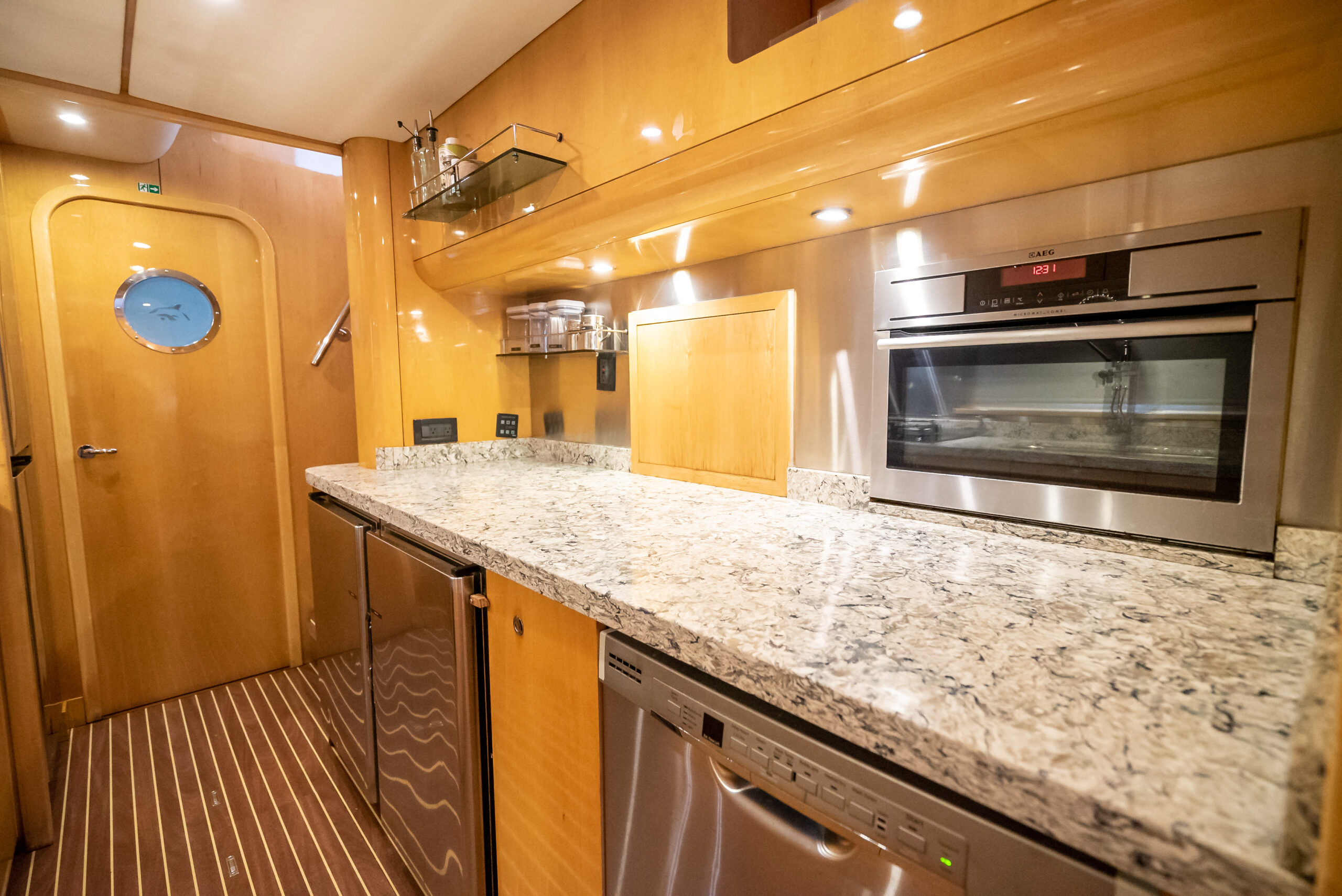 - Countertops in galley and heads