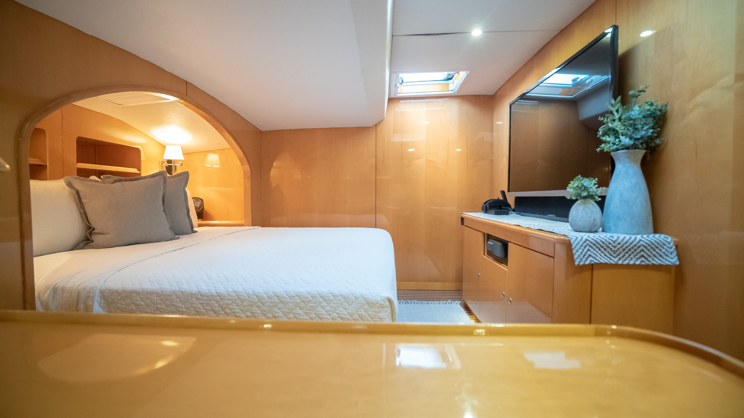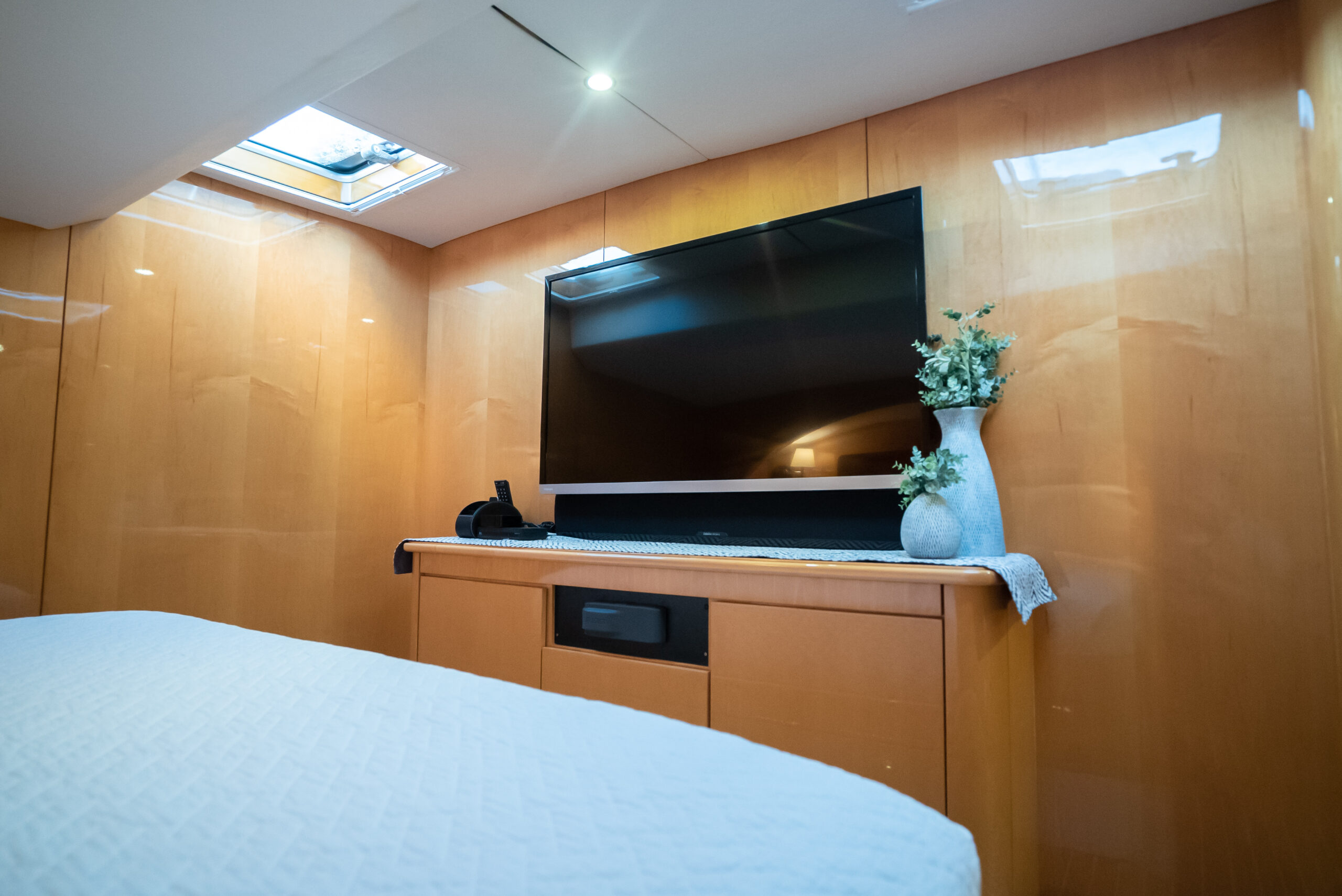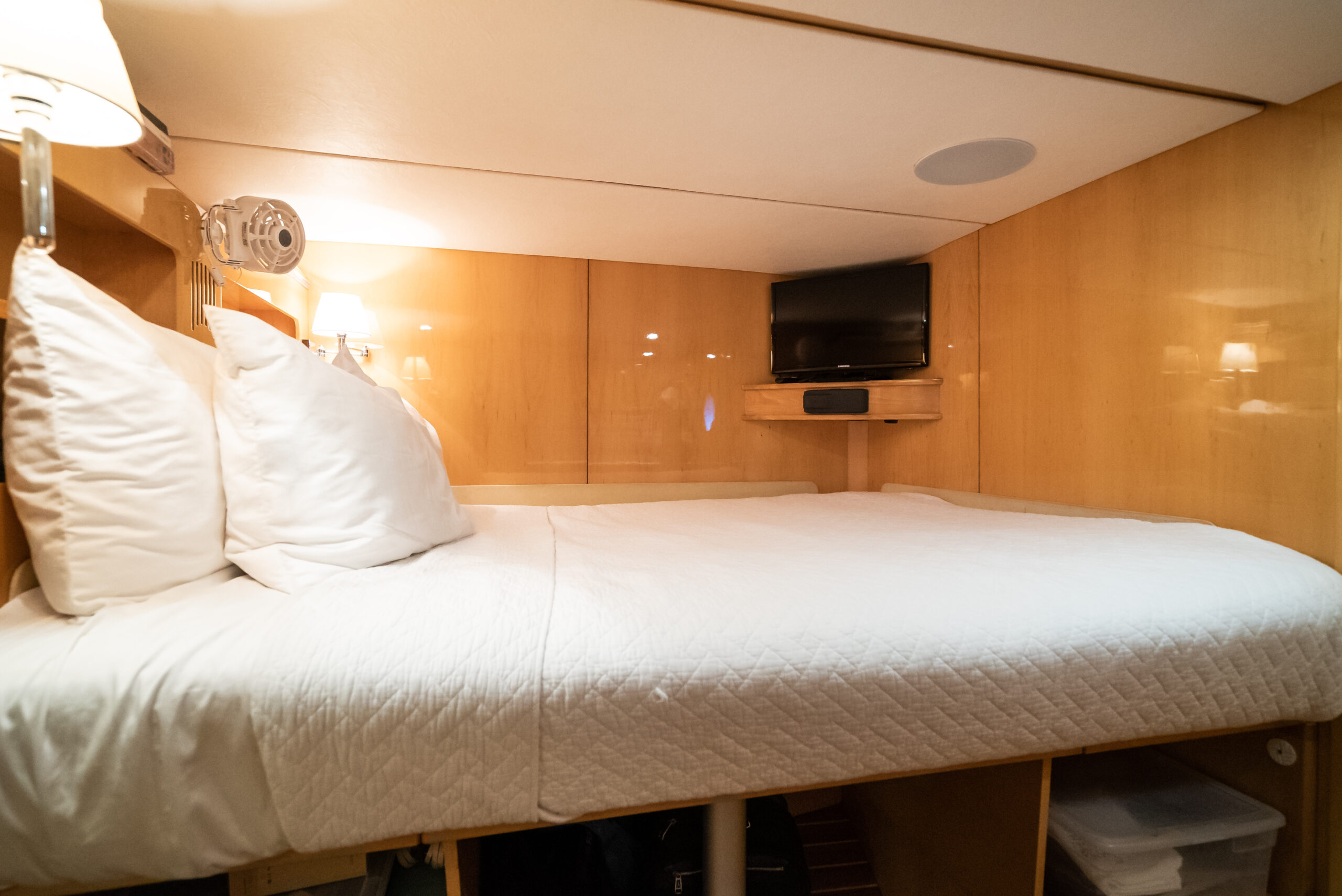 - Flat panel TV in crew cabin