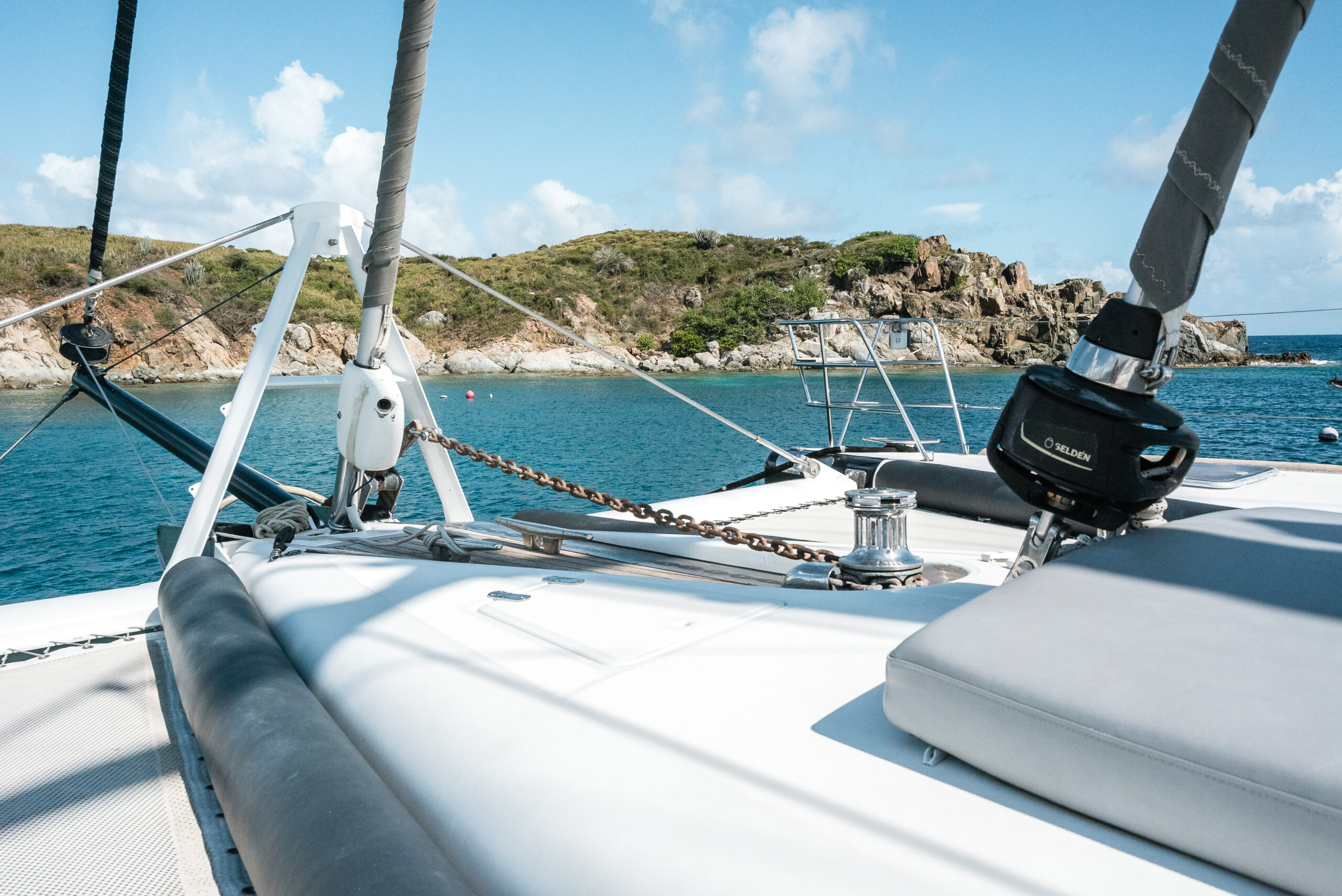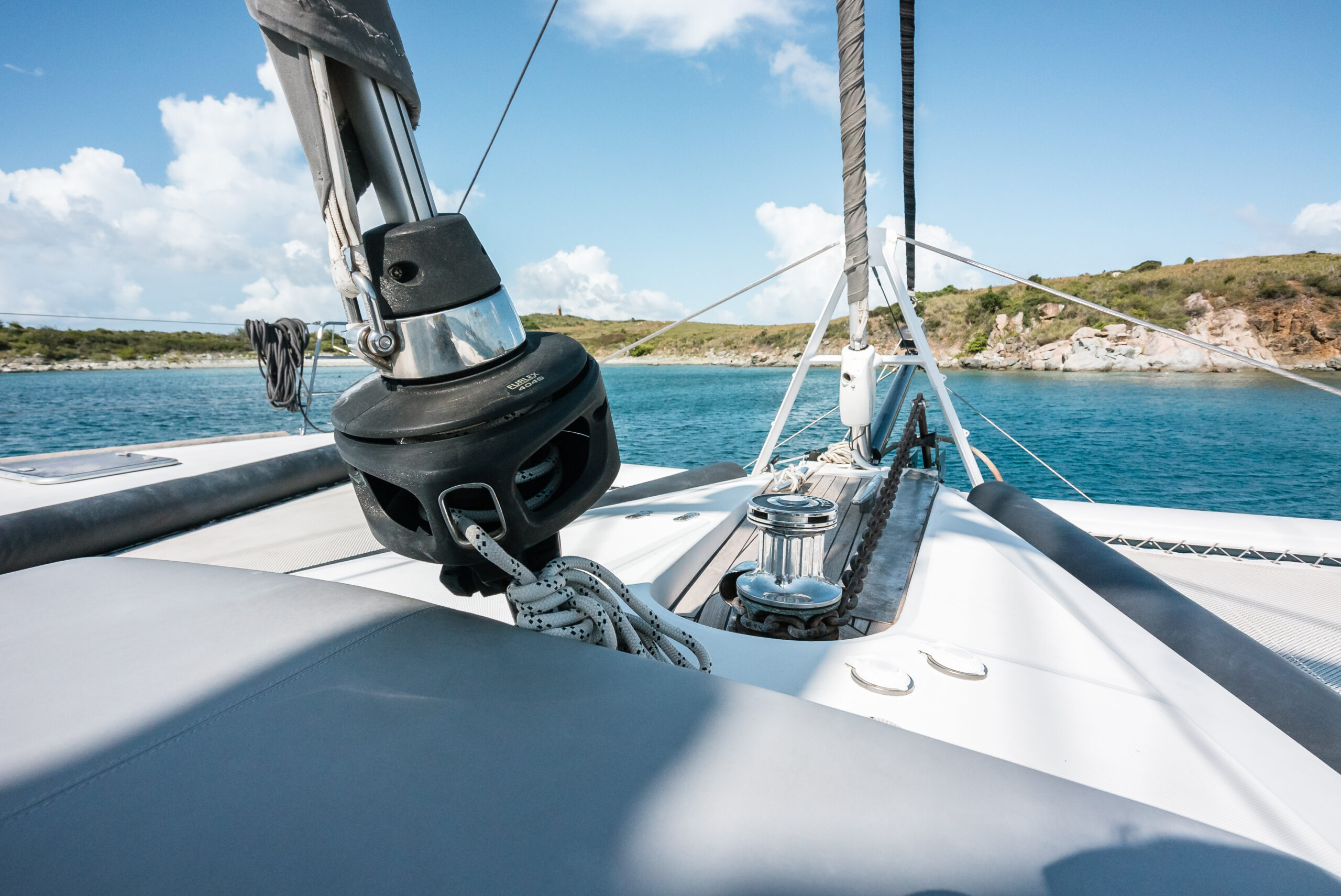 - Electric windlass in mooring locker for 1/2″ chain