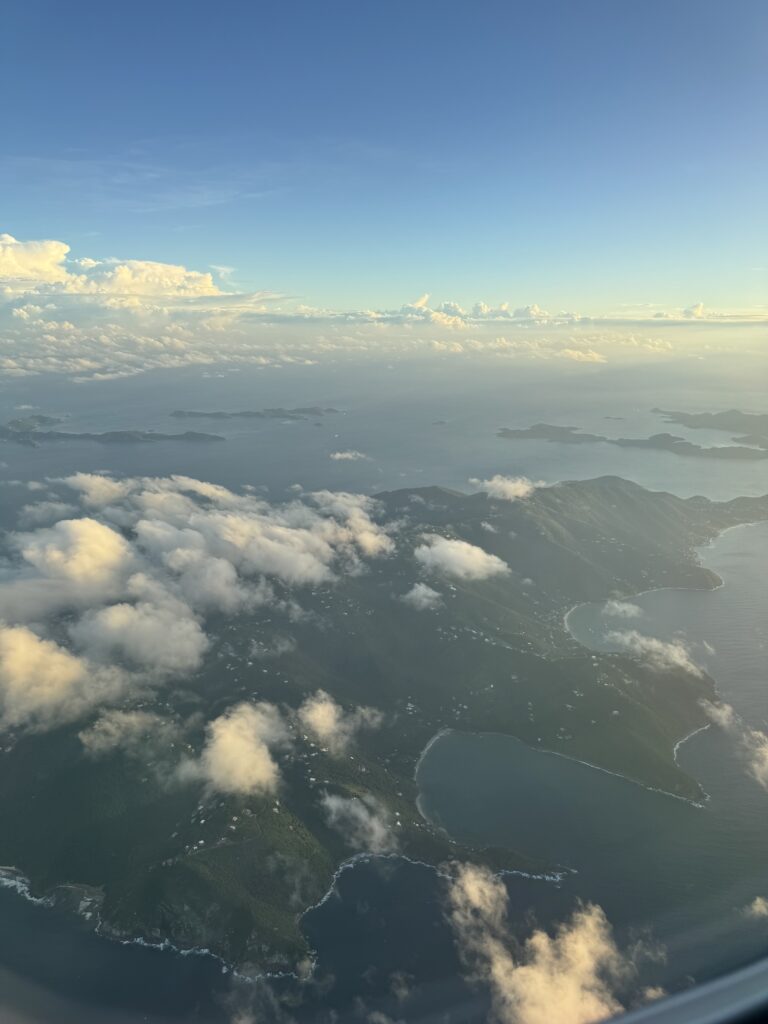 The other trick I’ve learned over the years is which side of the aircraft to sit on. When I am heading south I prefer to have a window seat on the starboard side of the aircraft. You’ll be rewarded with amazing views of Bahama turquoise-blue waters, trace along the north shore of the Dominican Republic, and see Puerto Rico and the US Virgin Islands in the distant.