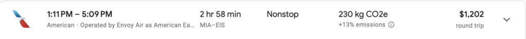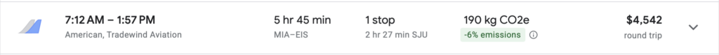This is without a doubt, the easiest option. Since they started the MIA to EIS route I’ve literally flown this route over 100 times. It has been a life changer for me personally. For $1,202 I can be to Tortola within 6 hours.
